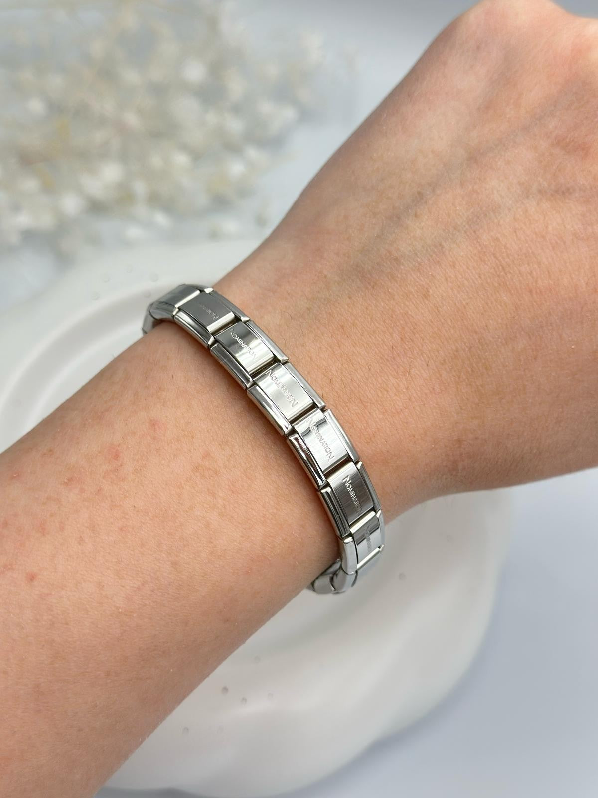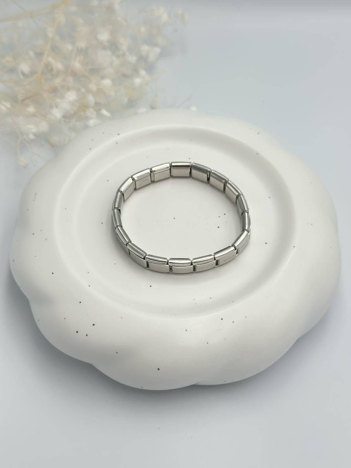 Kesik Plaka Detay Lastikli Çelik Bileklik