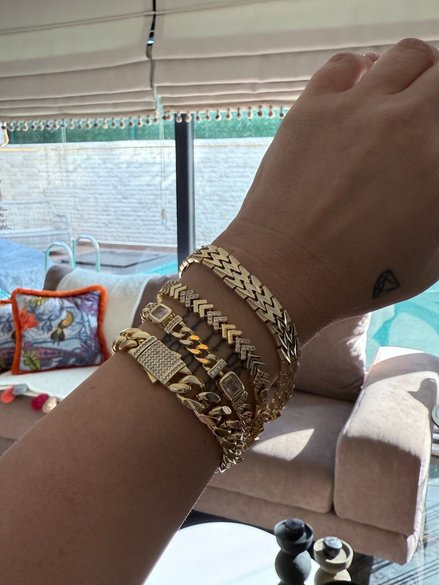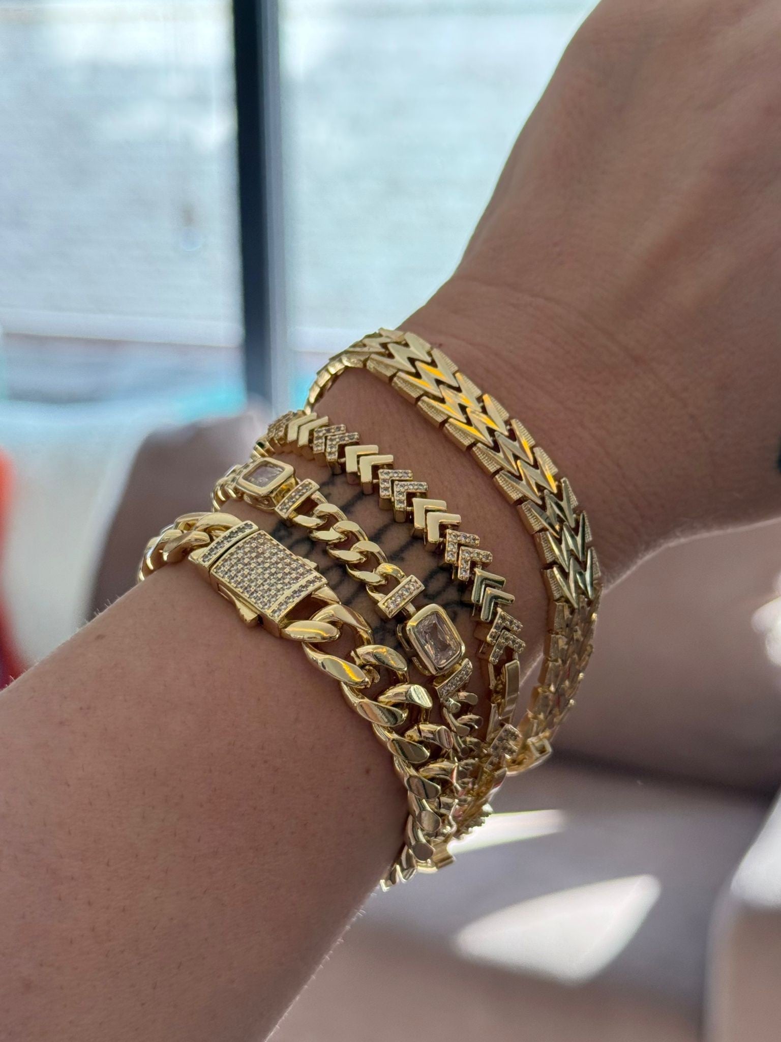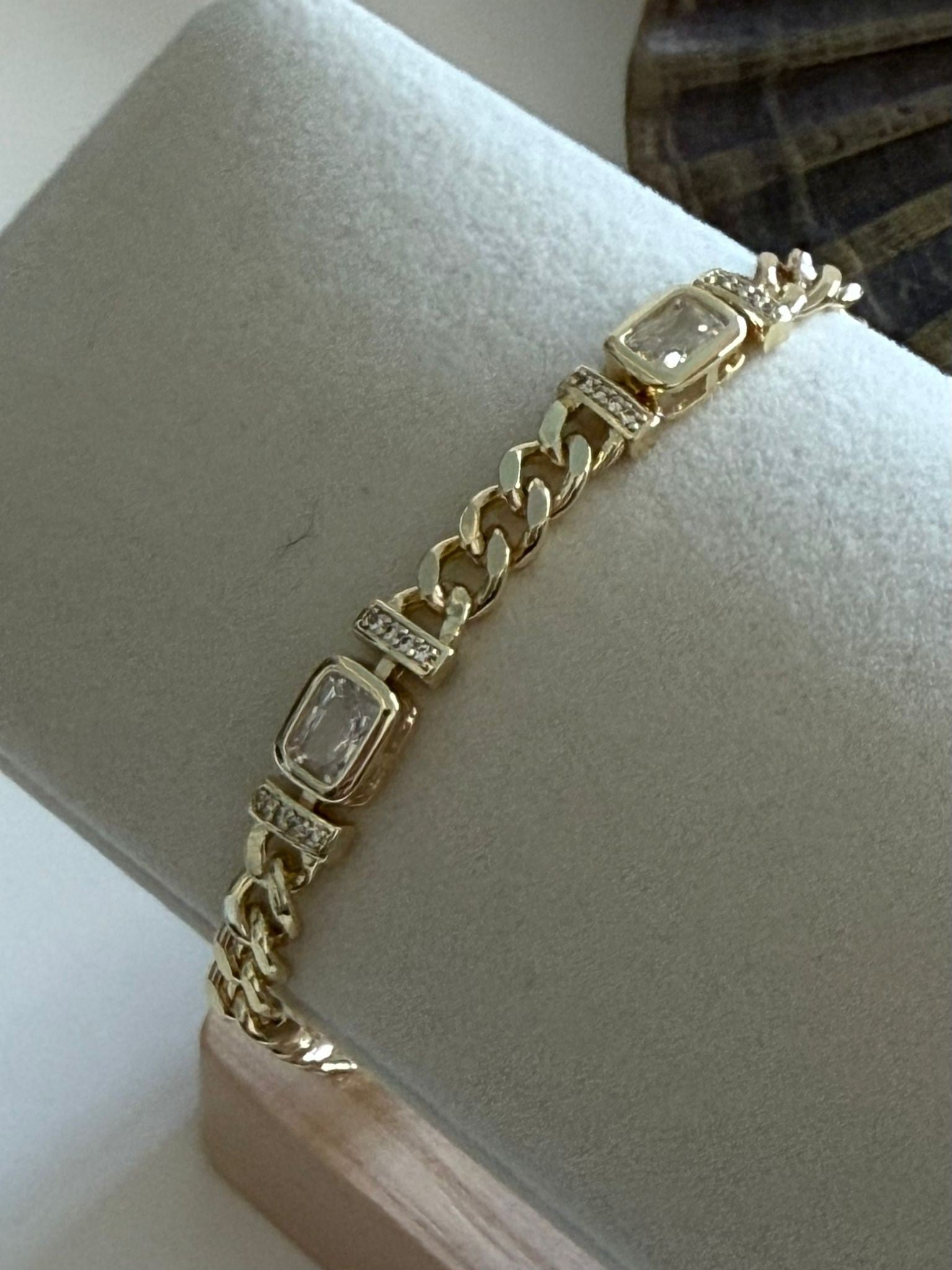 Piremium Serisi Zirkon ve Cam Taş Detaylı Zincir Unisex Çelik Bileklik