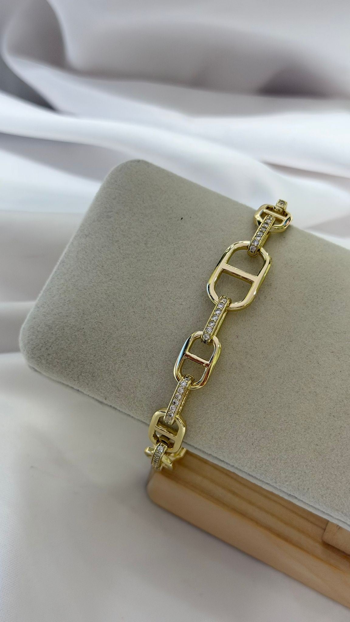 Zirkon Taş Detay Geometrik Çelik Bileklik