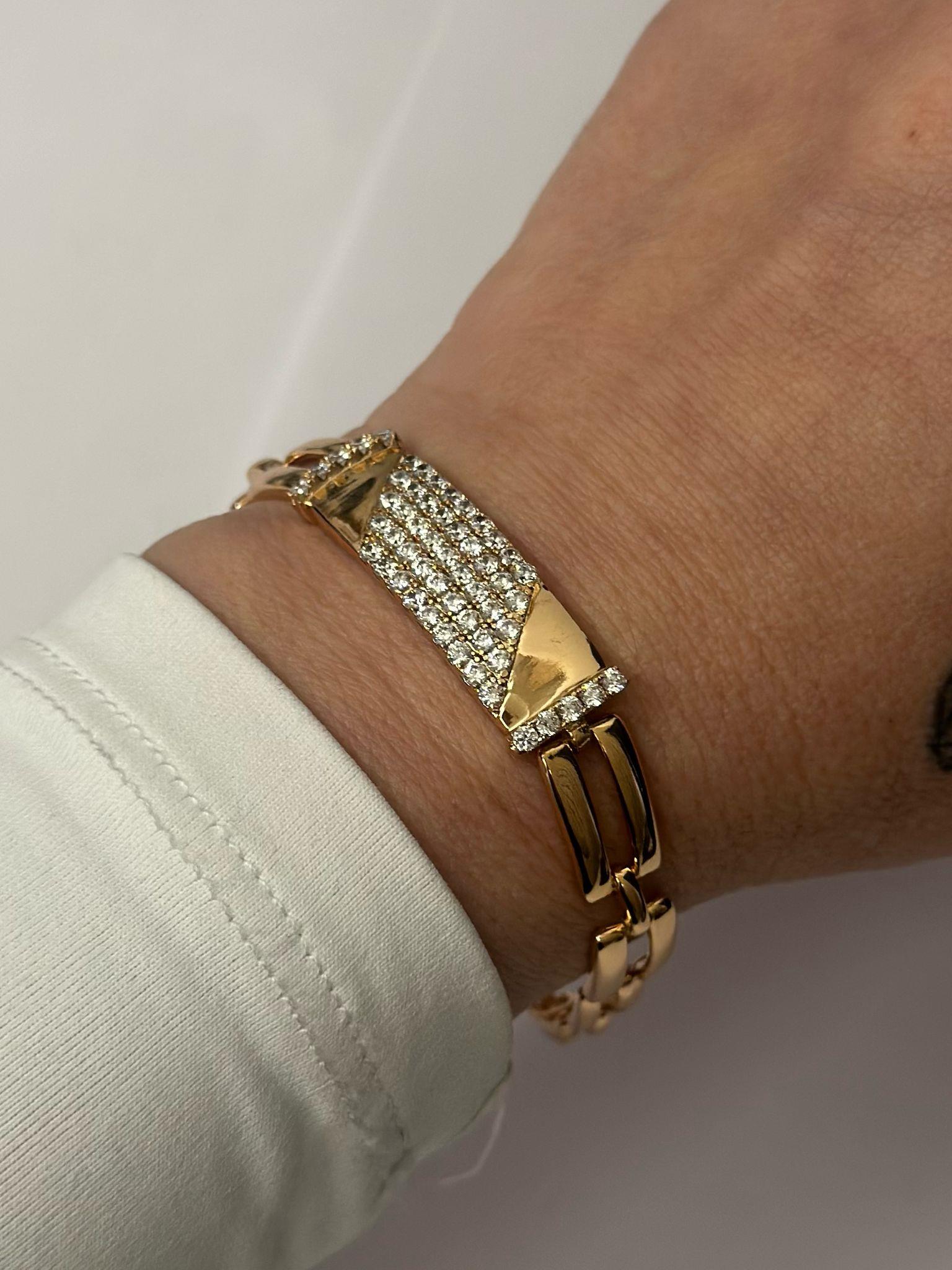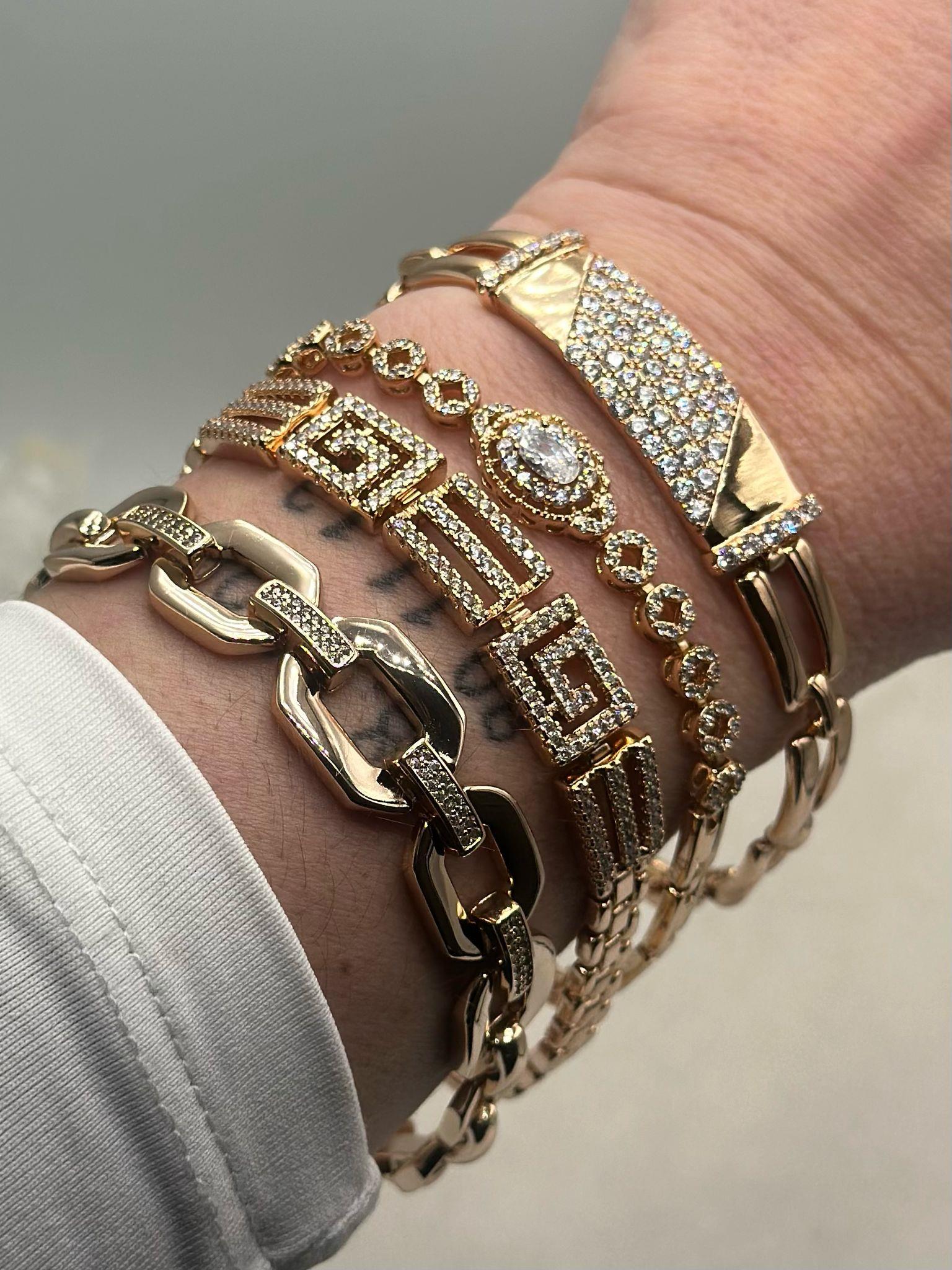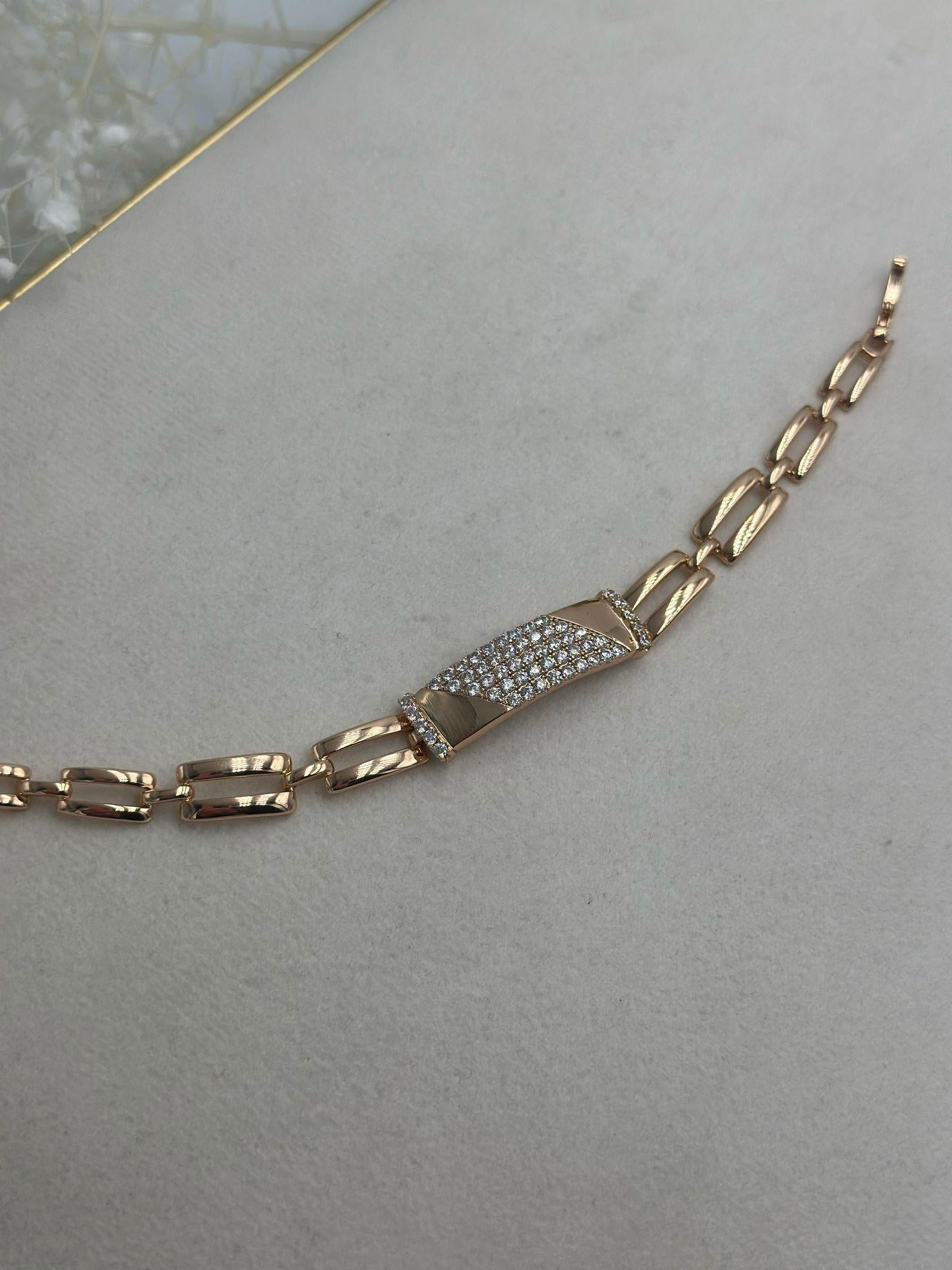 Zirkon Taş Detay Sıralı Kare Kesim Bileklik (Çelik)