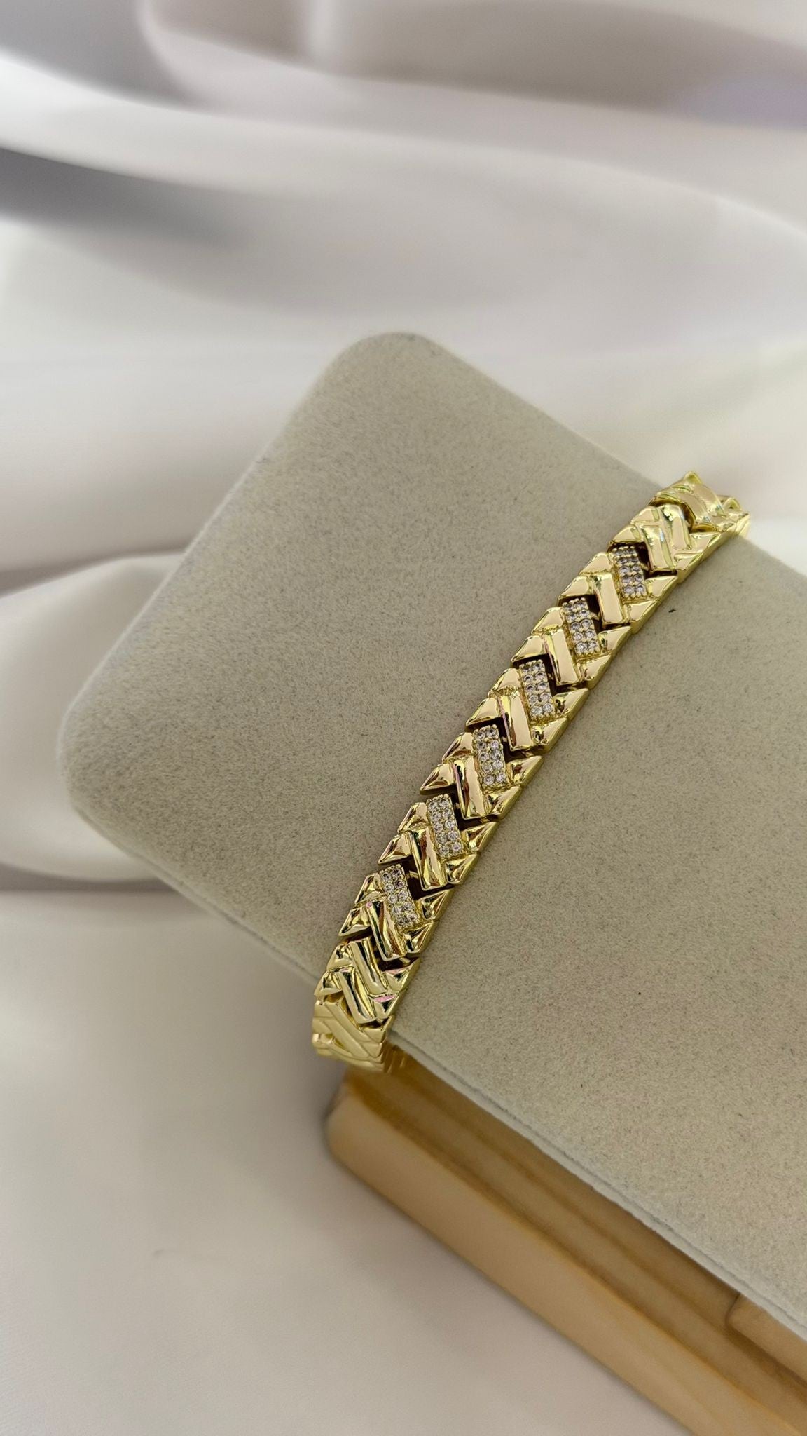 Zirkon Taş Detay Zik Zak Bileklik (Çelik)