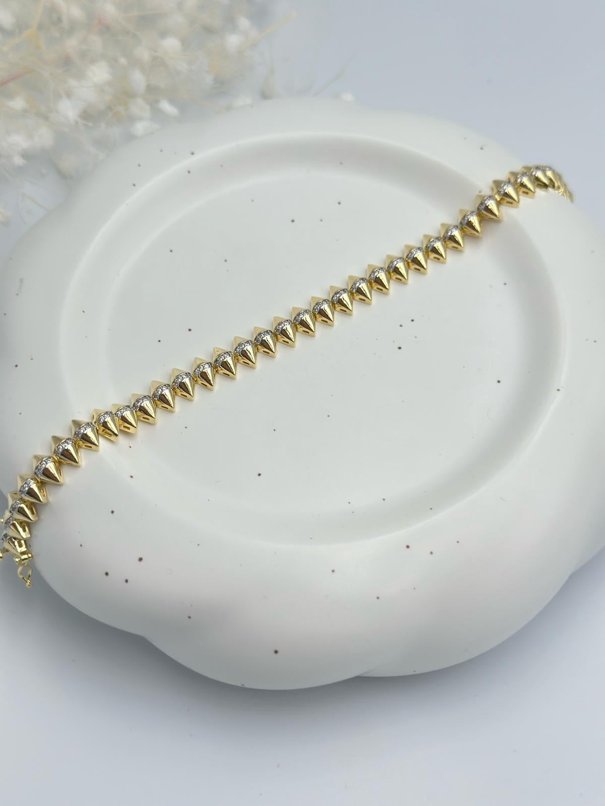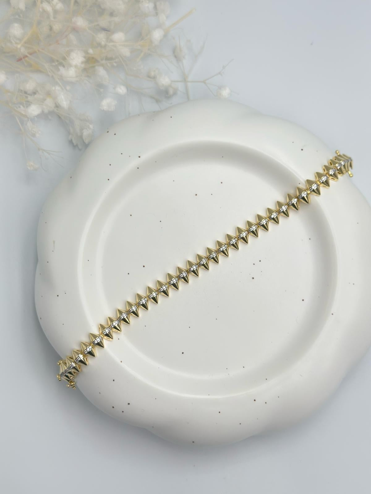 Zirkon Taş Detaylı Sıralı Çivi Çelik Bileklik
