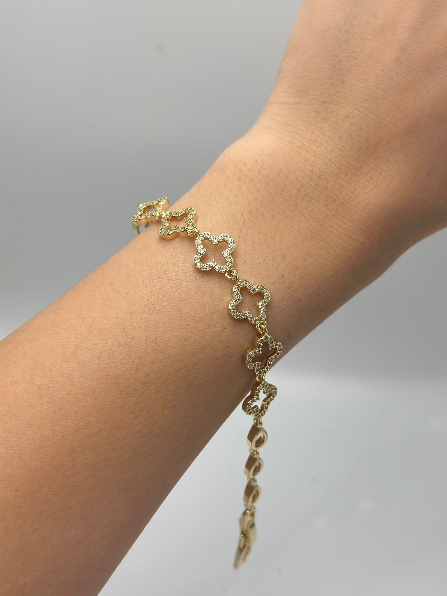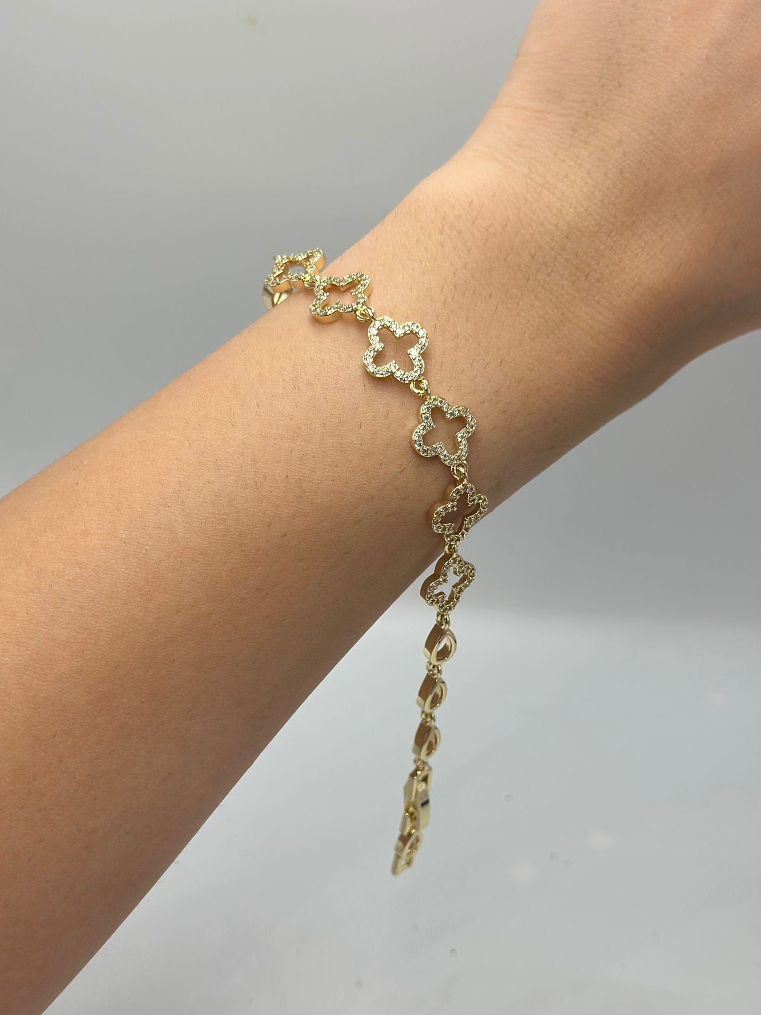Zirkon Taş Detaylı Sıralı Yonca Çelik Bileklik