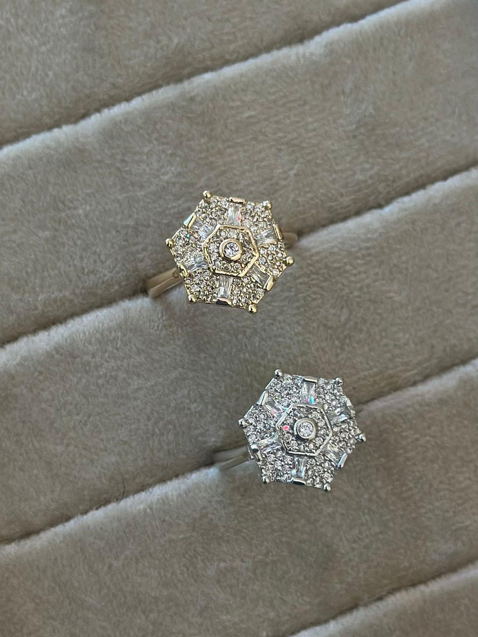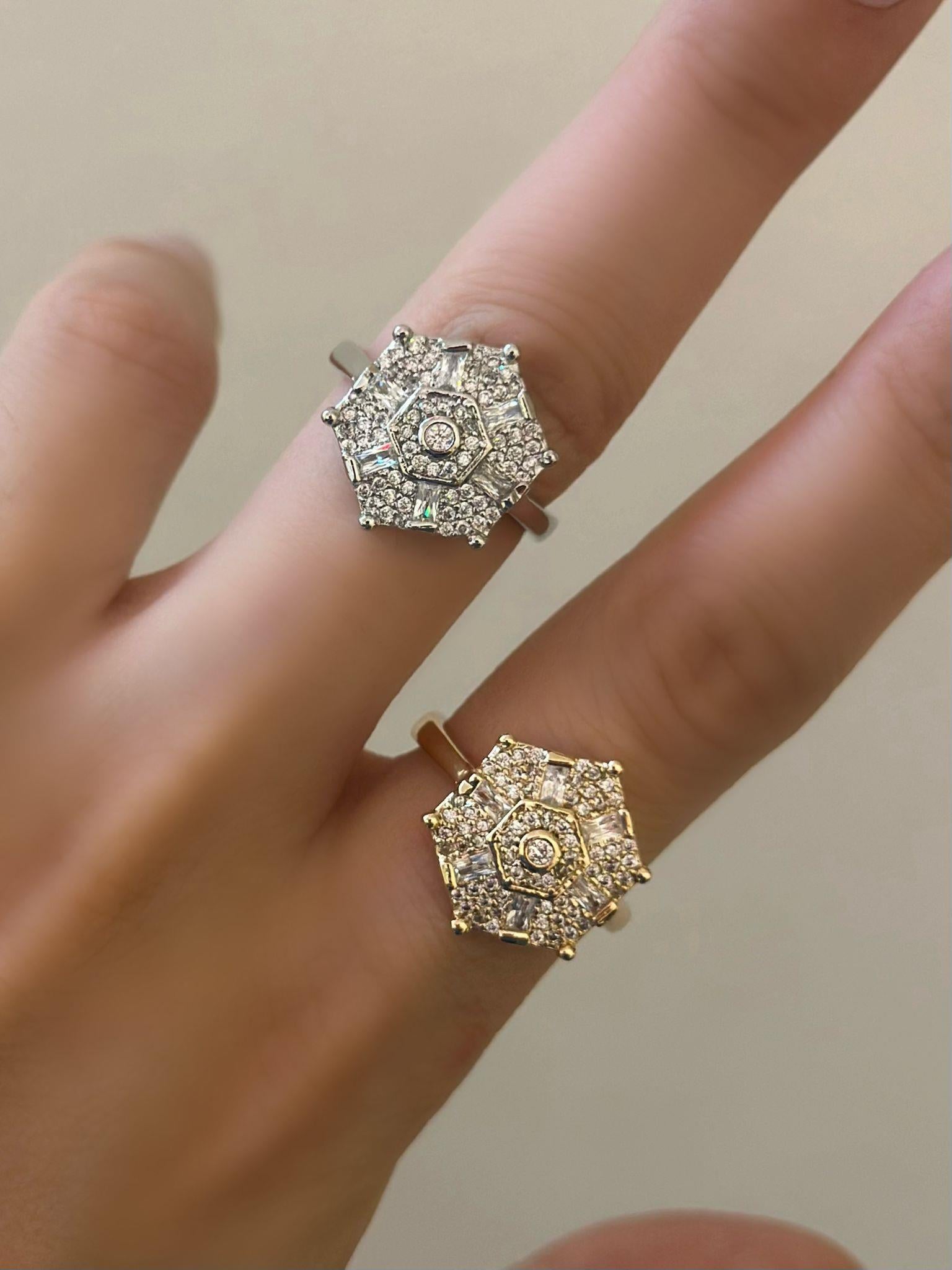 Full Zirkon Taş Altıgen Yüzük (Premium Seri)