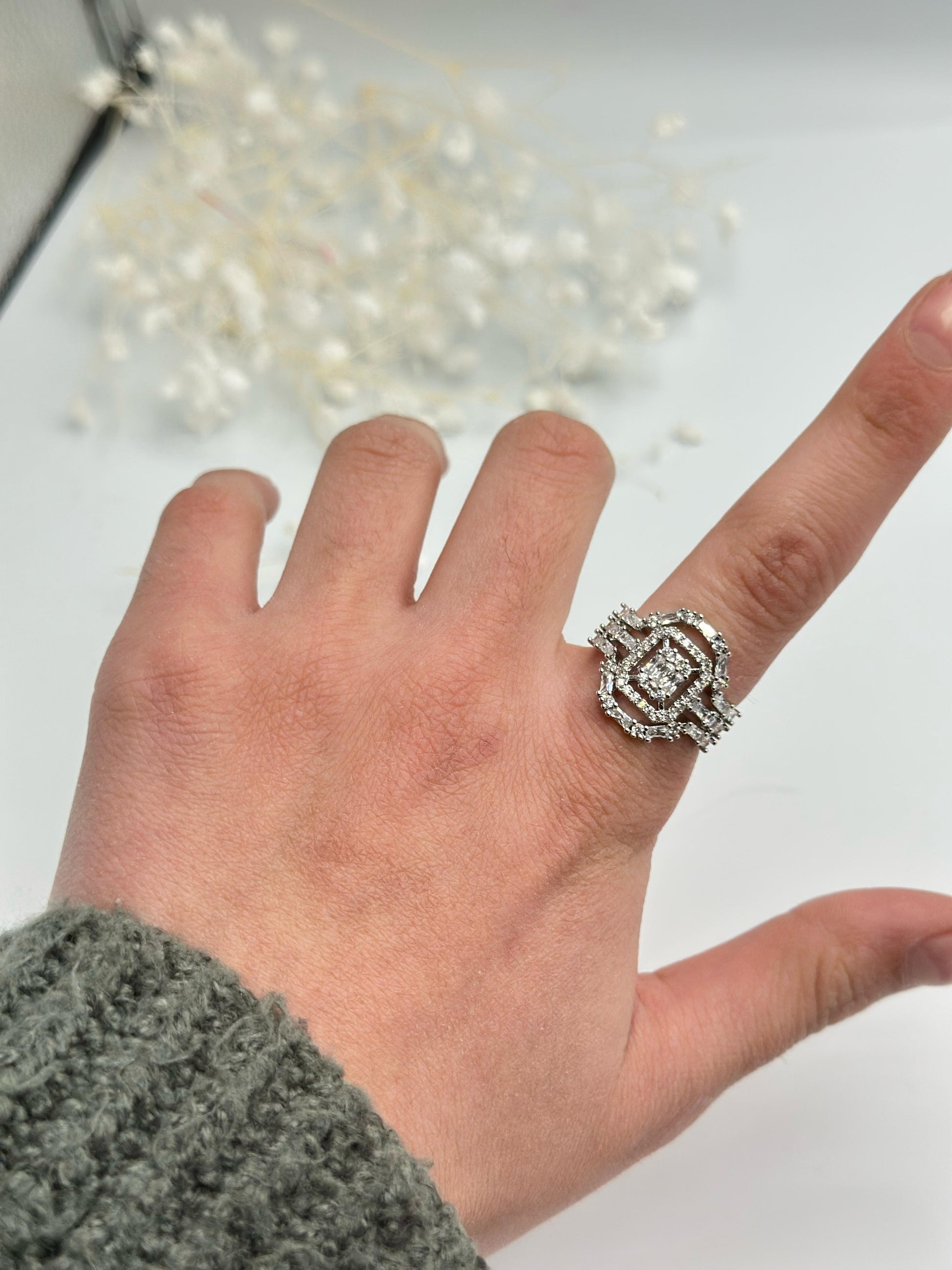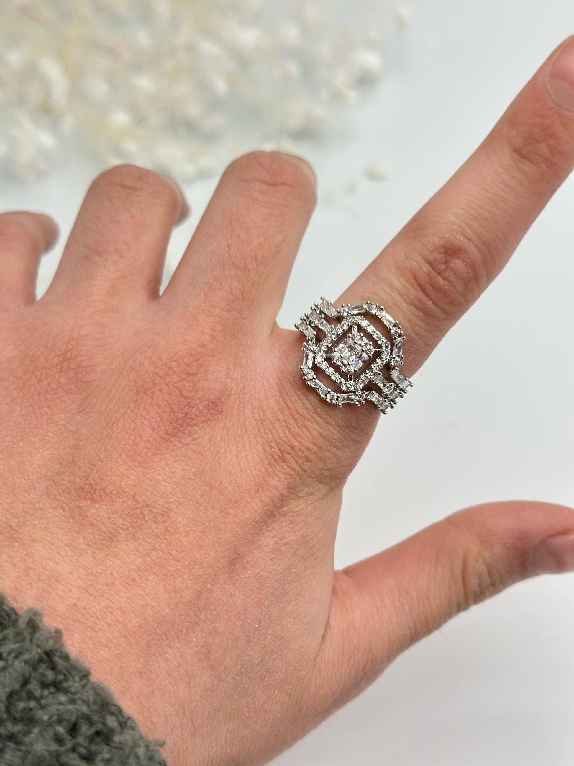 Full Zirkon Taş Detaylı Kare Kesim Yüzük