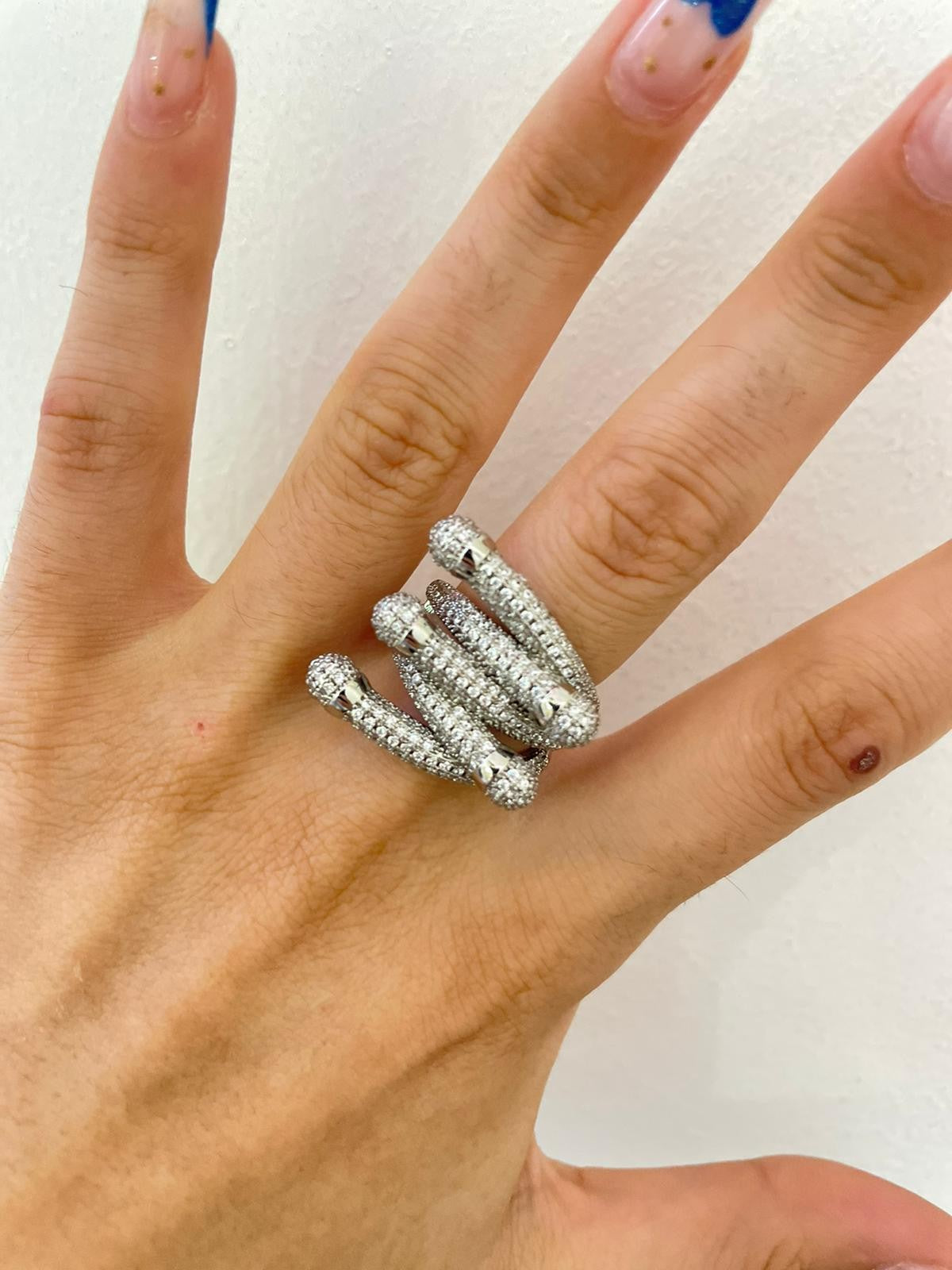 Full Zirkon Taş Ve Topçuk Detaylı Yüzük (Gümüş Kaplama)