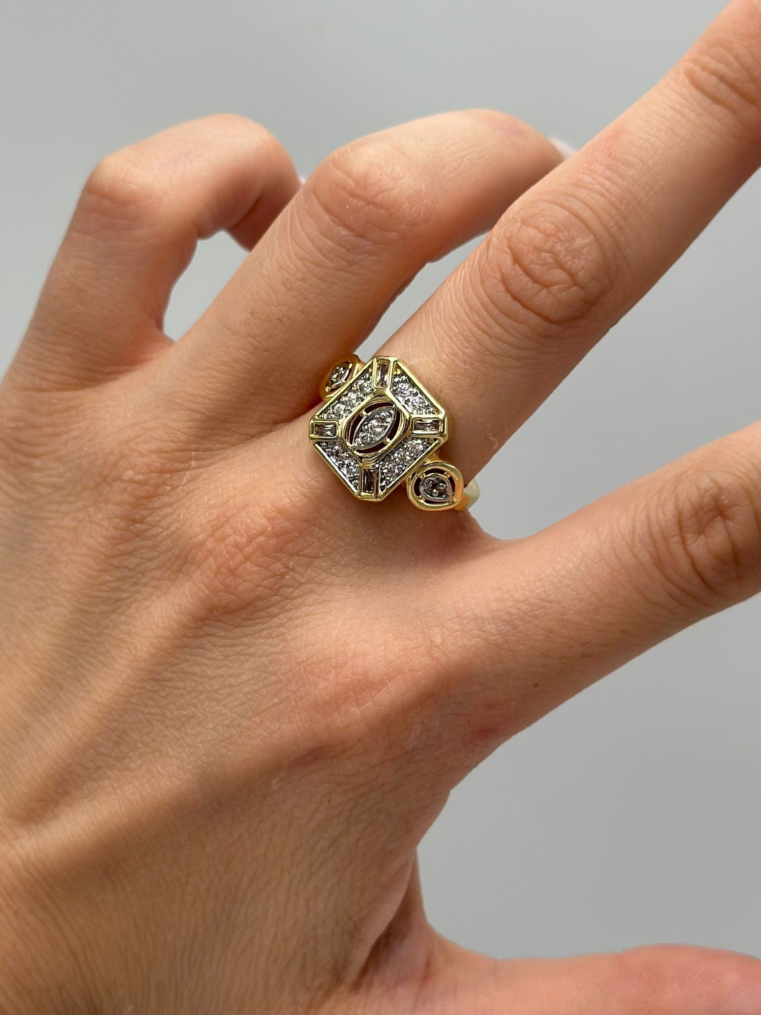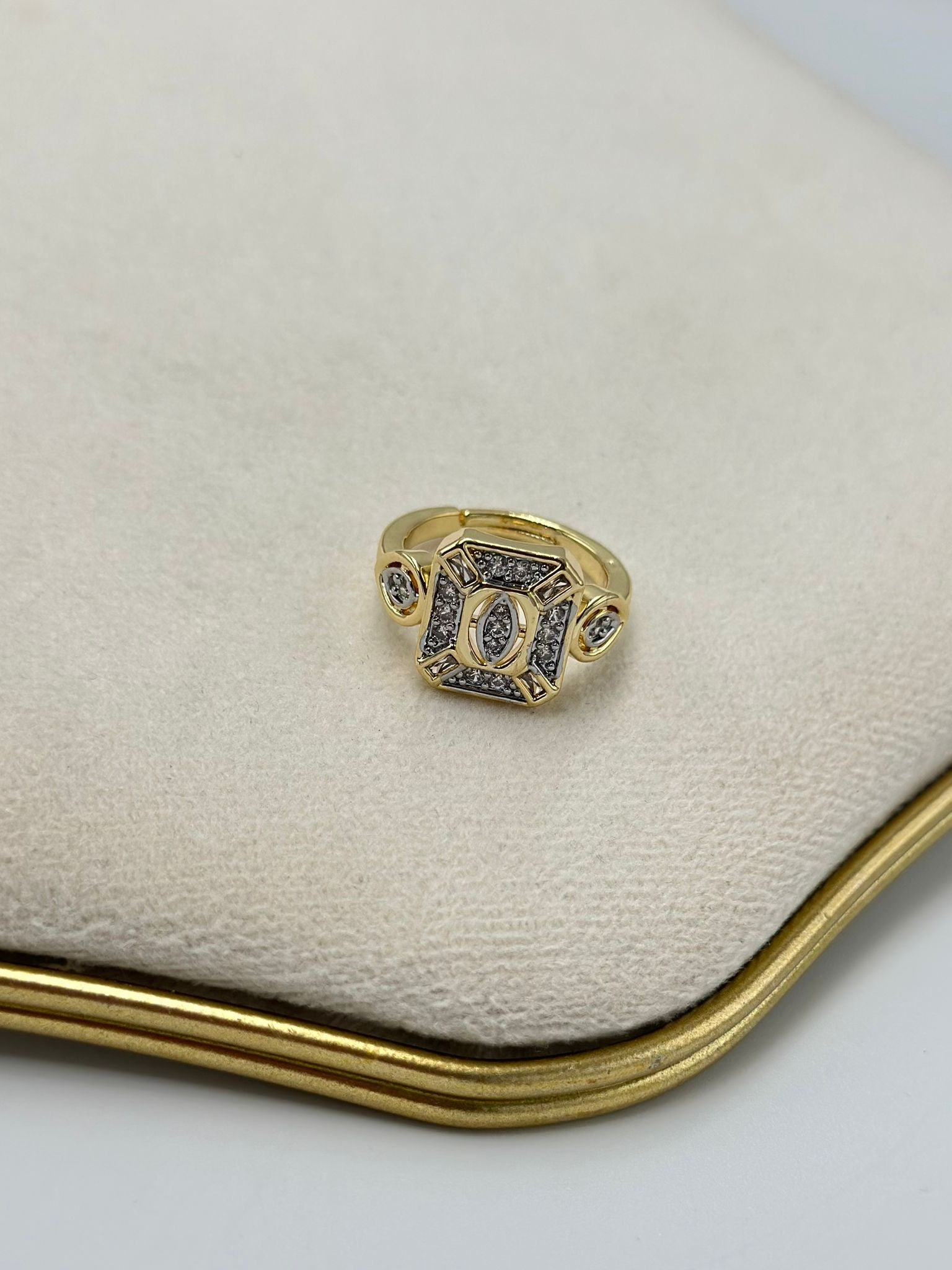 Geometrik Zirkon Taş Detay Ayarlanabilir Yüzük (Çelik)