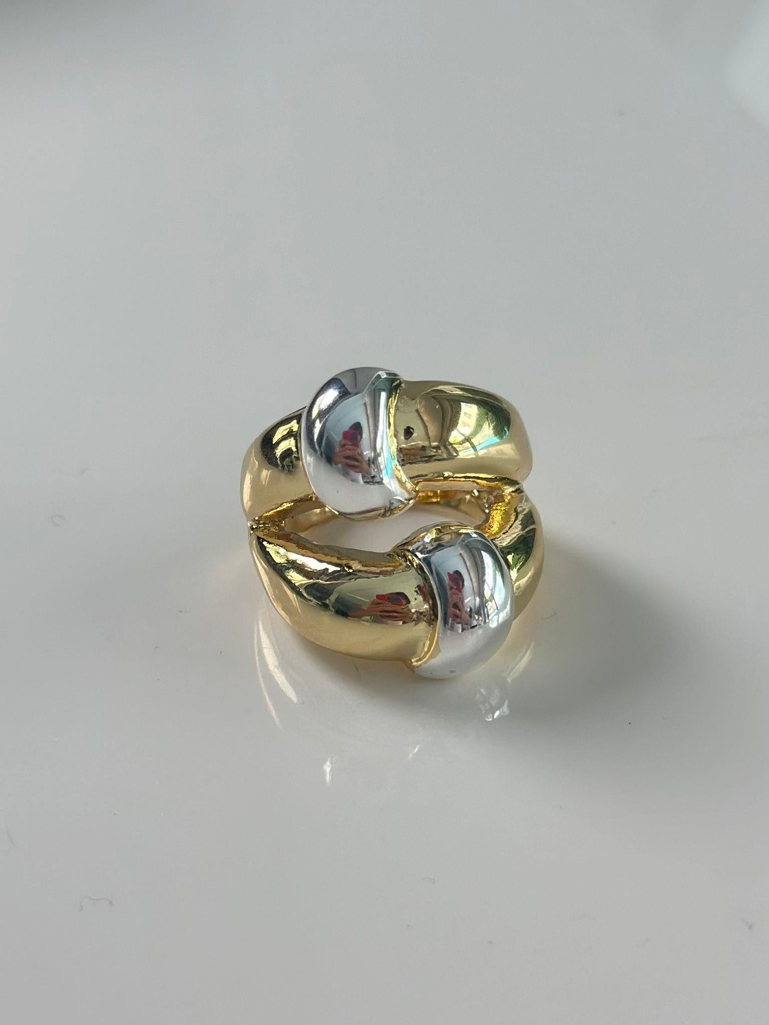 İki Renk Detaylı Plaka Kalın 2 Sıra Çelik Yüzük