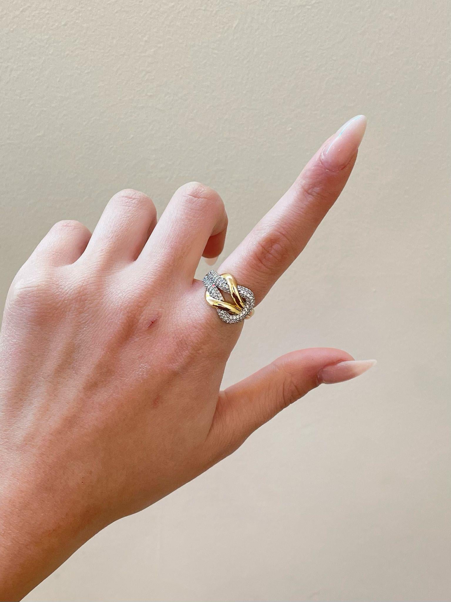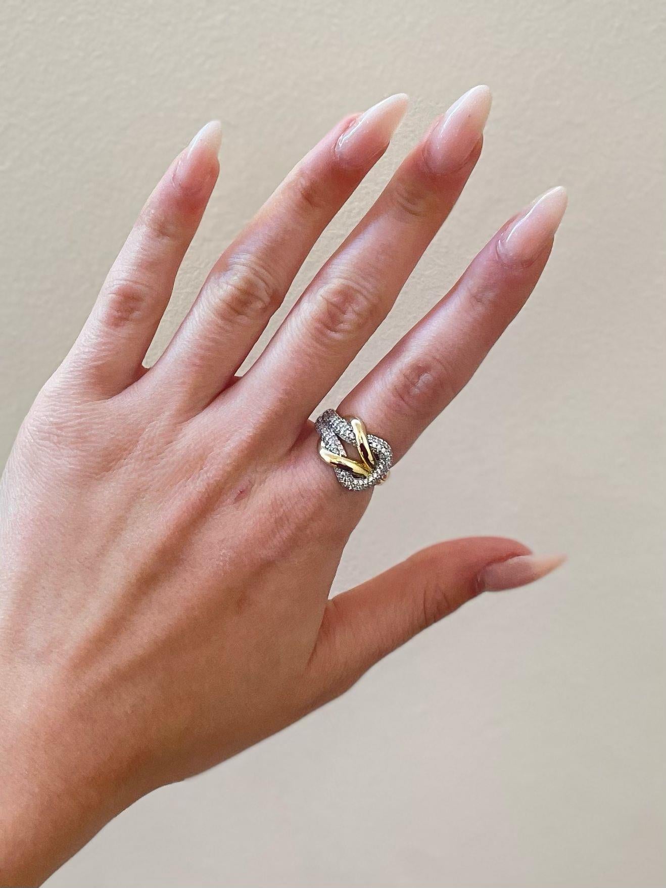 İki Renk Zirkon Taş Detay Düğüm Model Yüzük