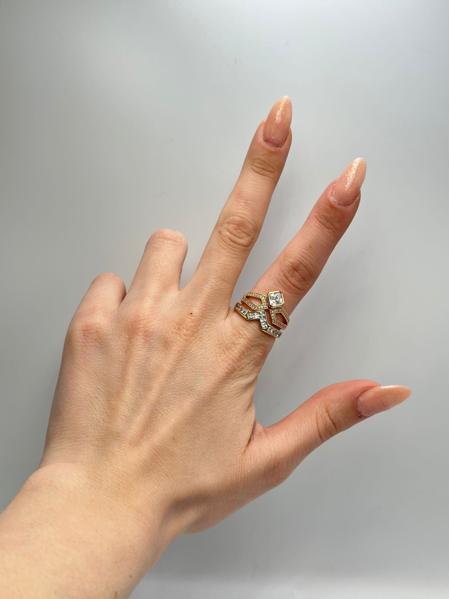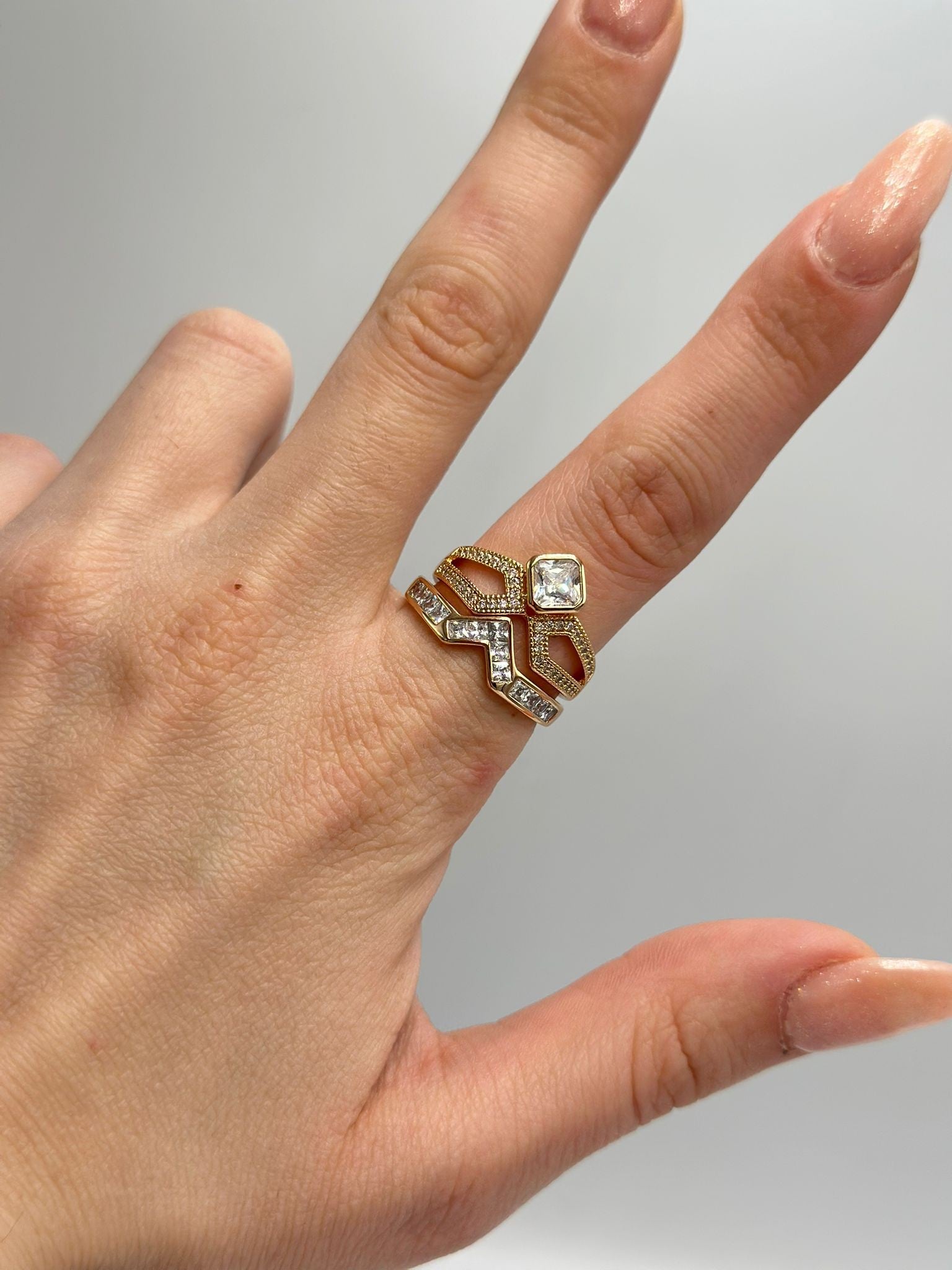 İkili Üçgen Ve Zirkon Taş Detay Yüzük