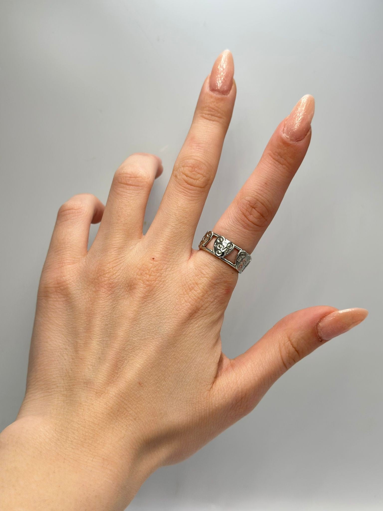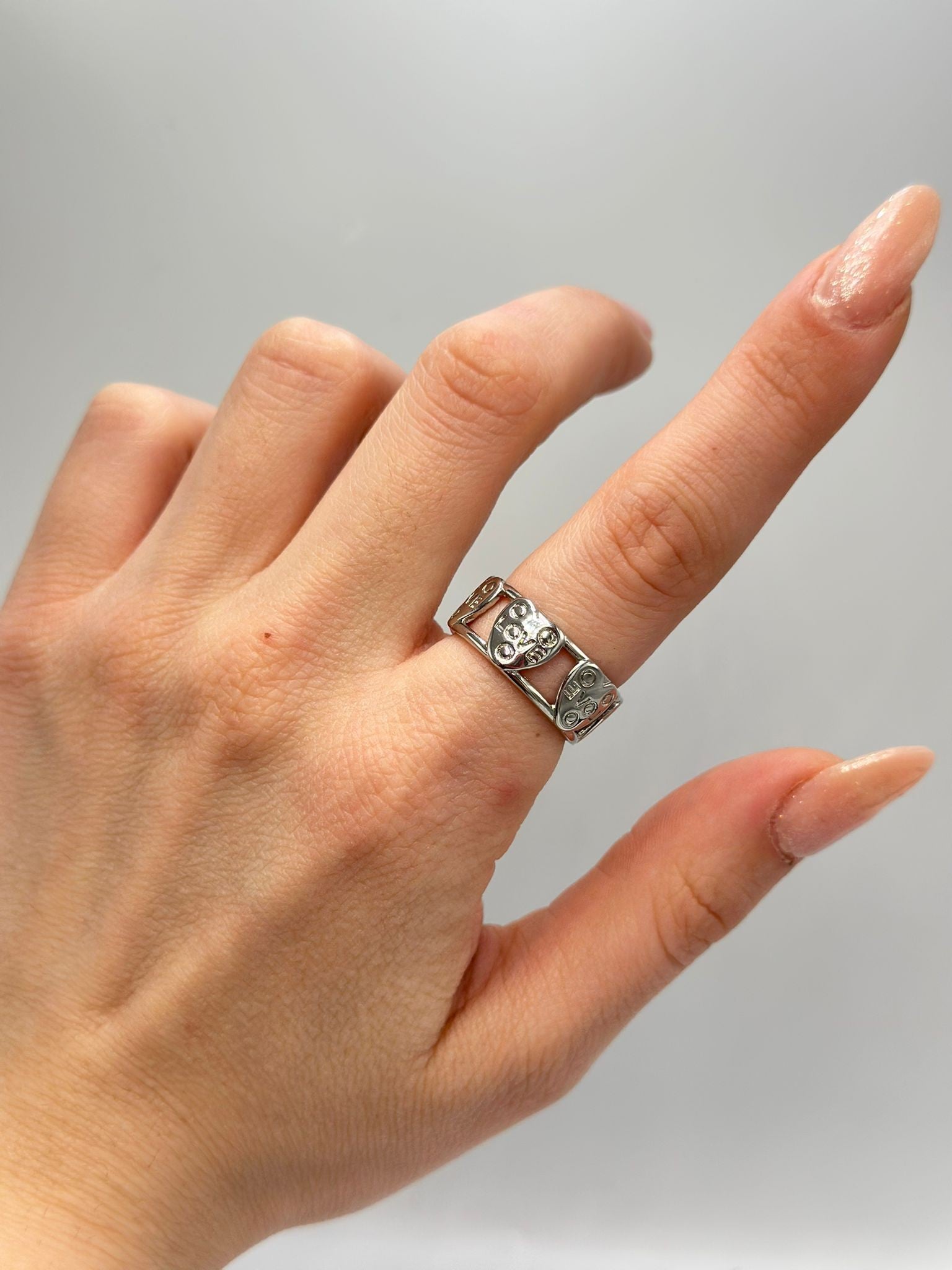 İşlemeli Kap Plaka Detaylı Ayarlamalı Gümüş Renk Yüzük