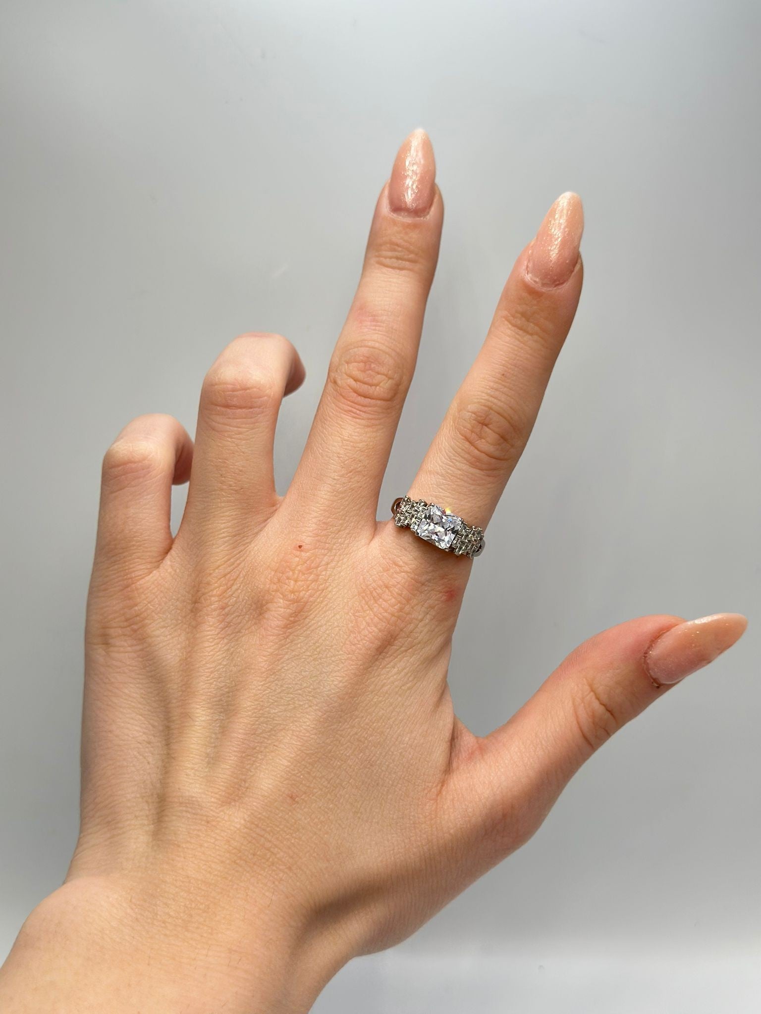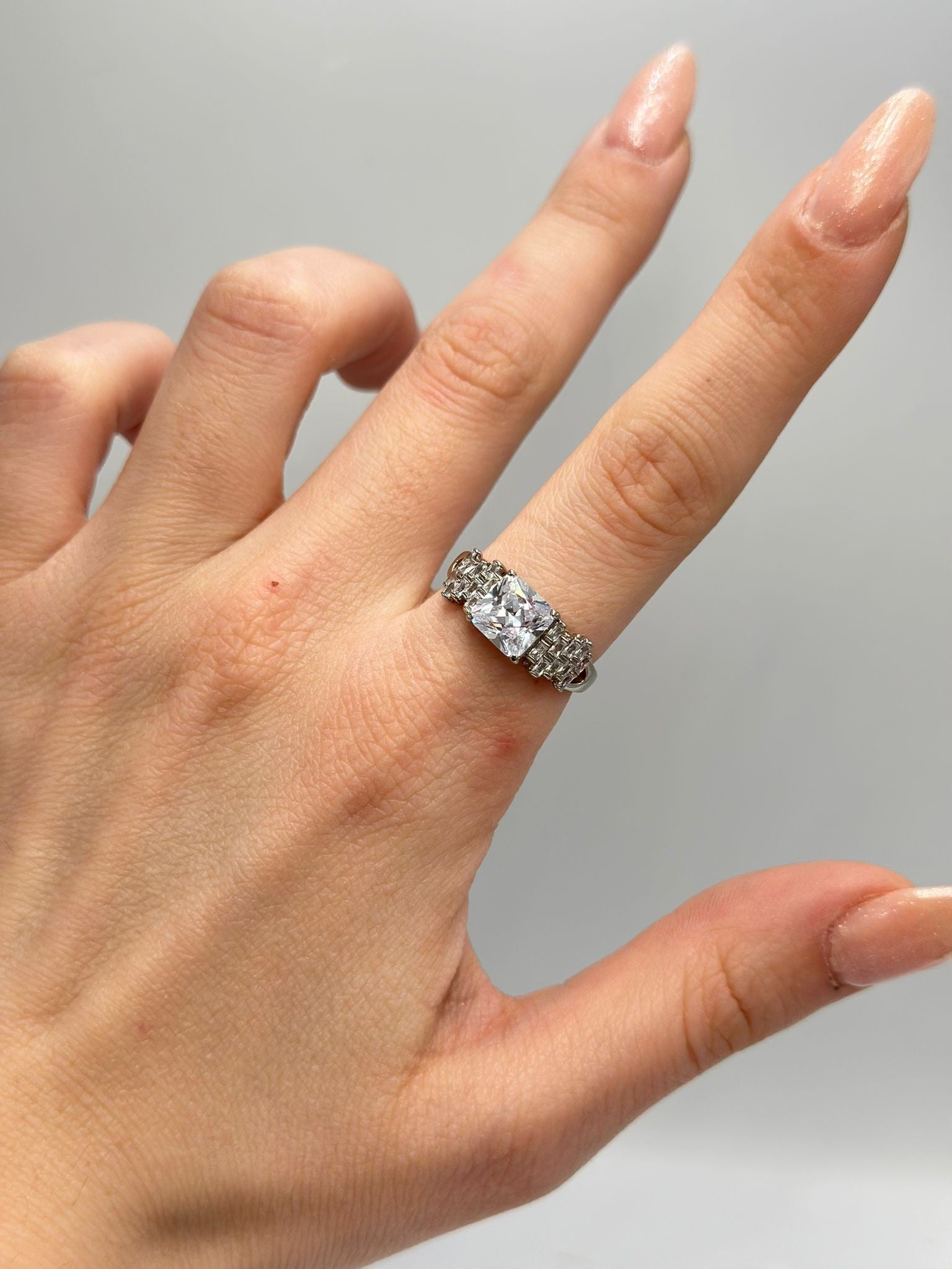Kare Baget Taş Detaylı Çelik Gümüş Renk Yüzük