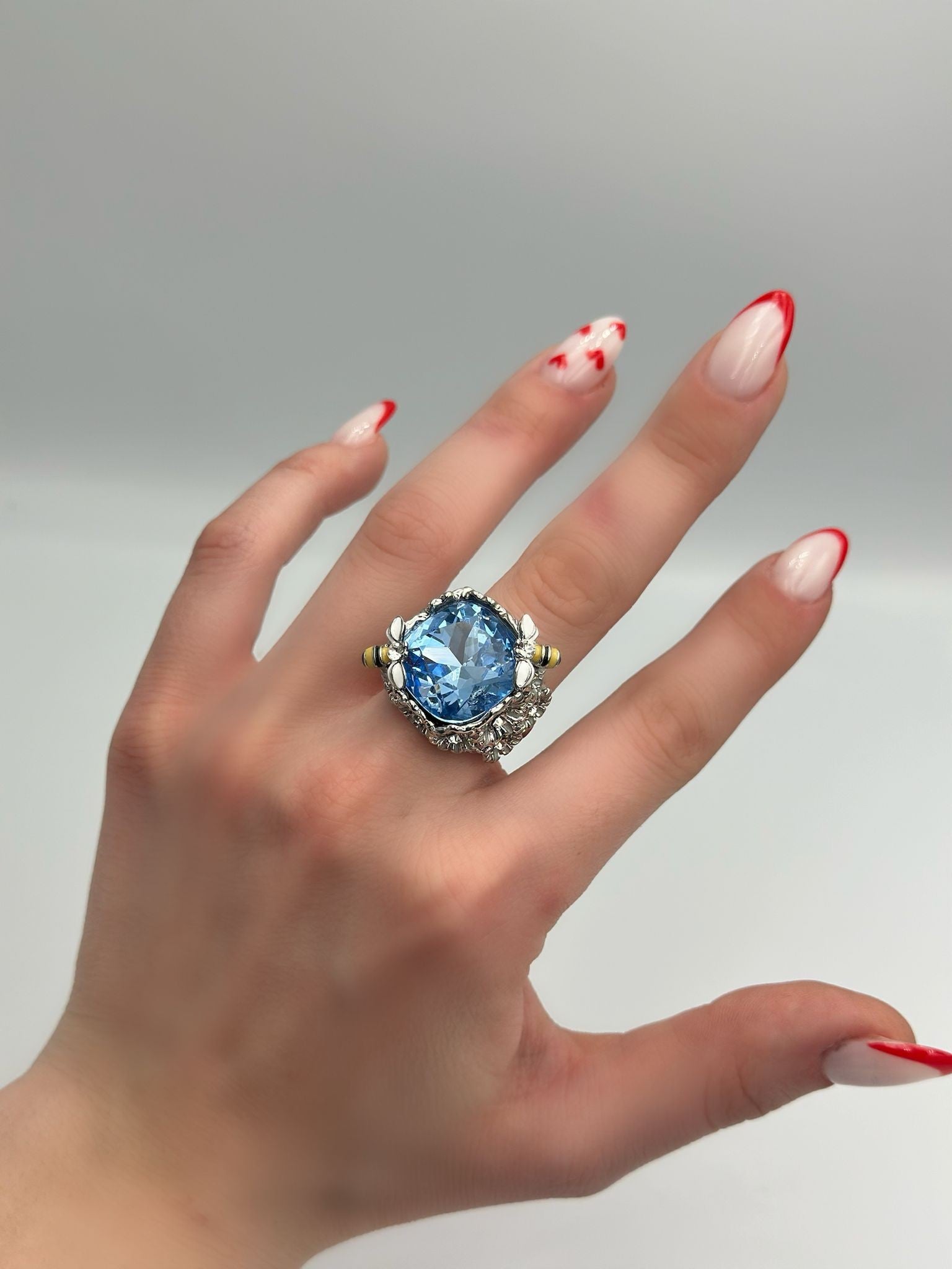 Kristal Cam Taş Ve Arı Detaylı Vintage Tasarım Gümüş Kaplama Yüzük
