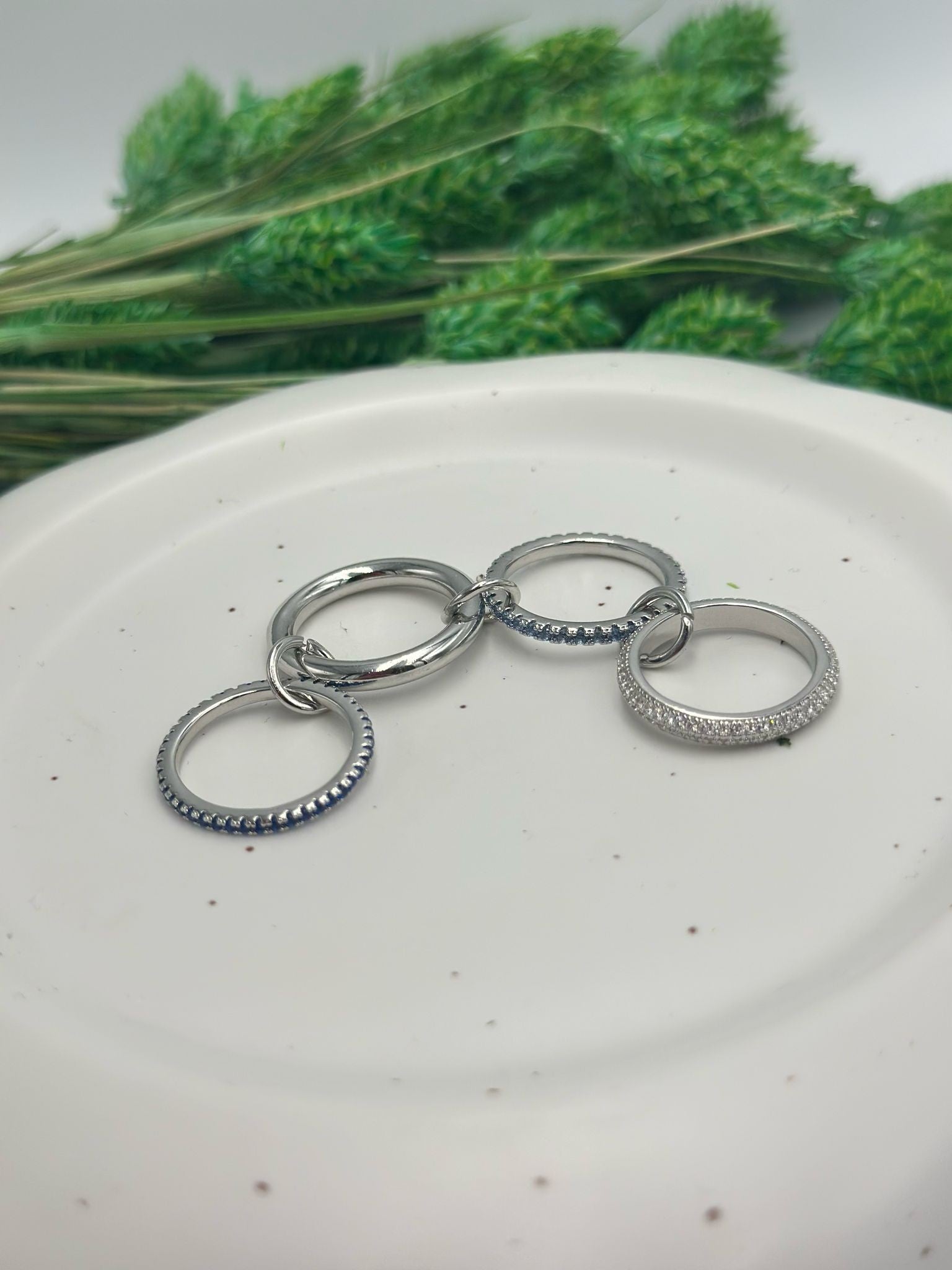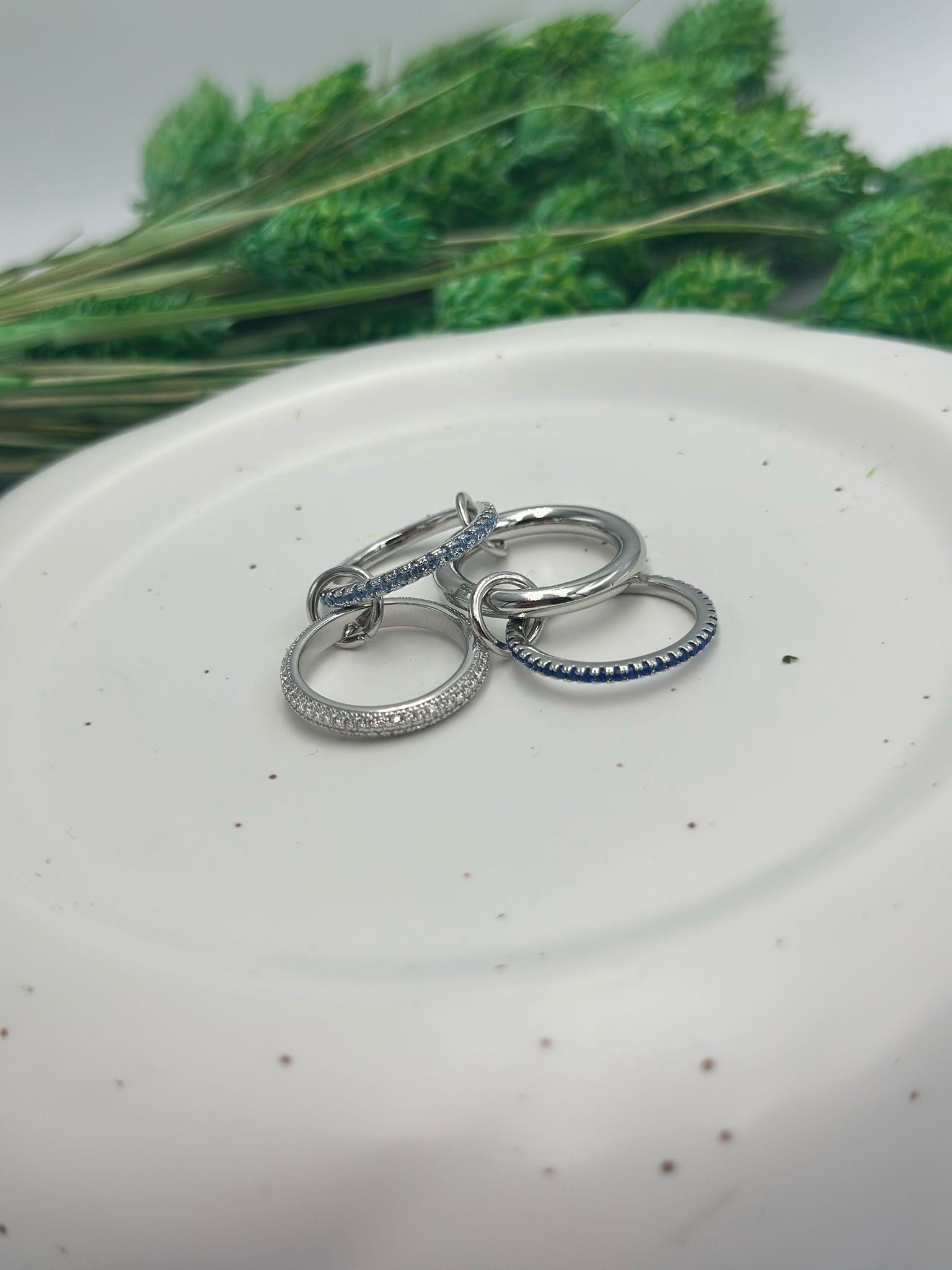 Mavi Zirkon Taş Detaylı 4Lü Set Çelik Yüzük