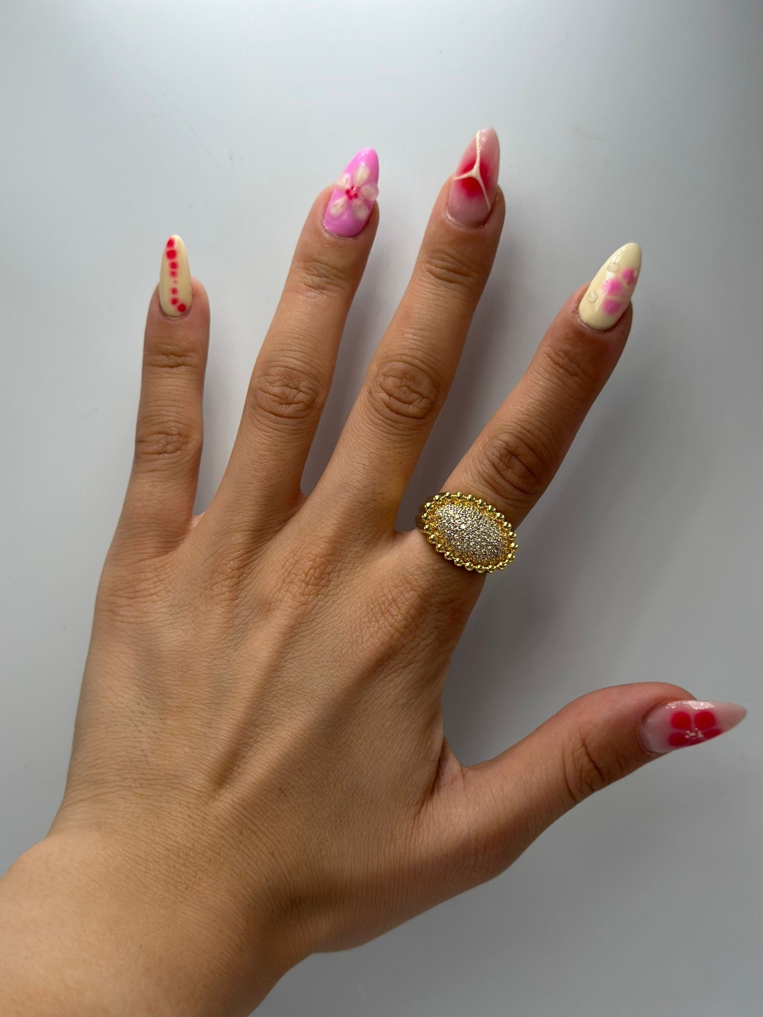 Oval Kesim Zirkon Taş Detaylı Çelik Yüzük