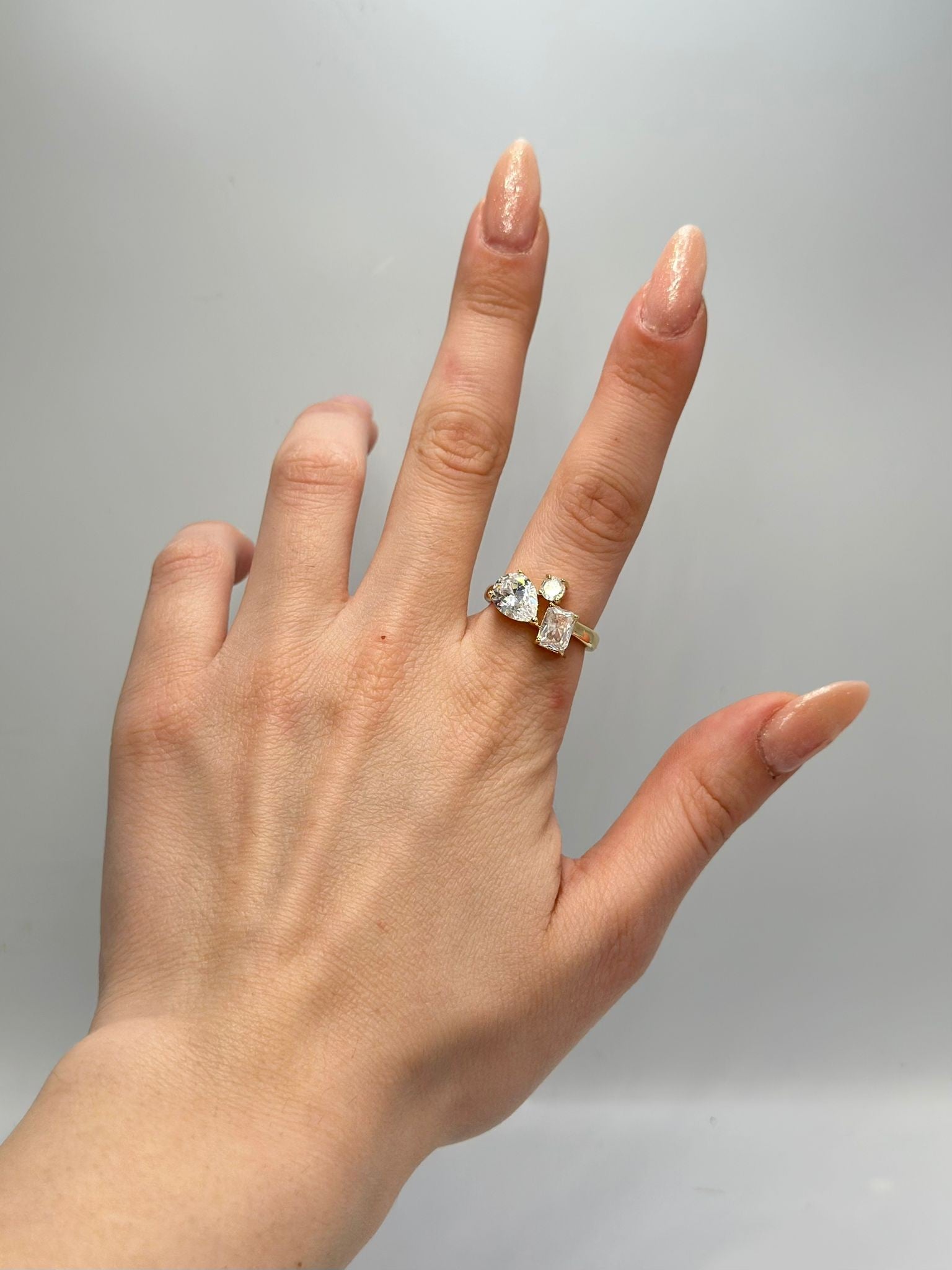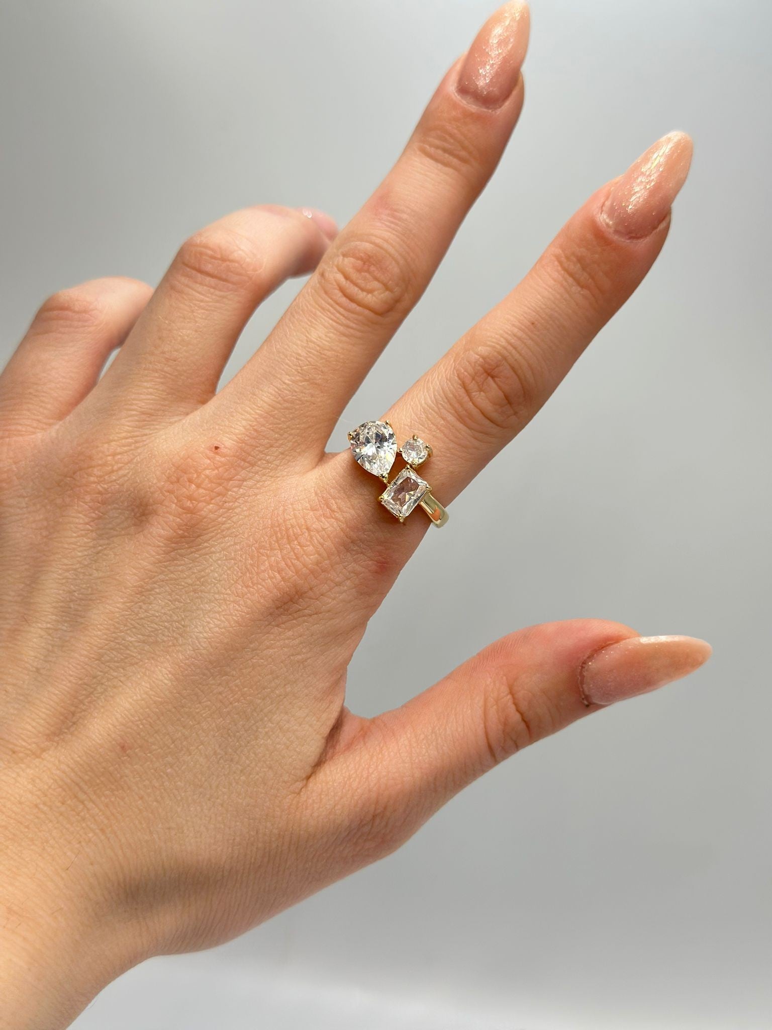 Özel Seri Pirinç Kaplama Damla Ve Baget Taş Yüzük