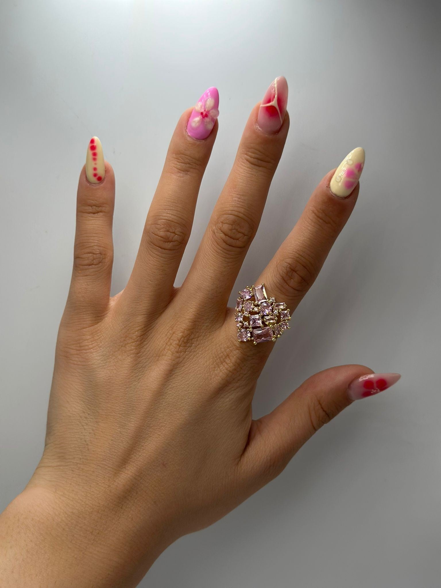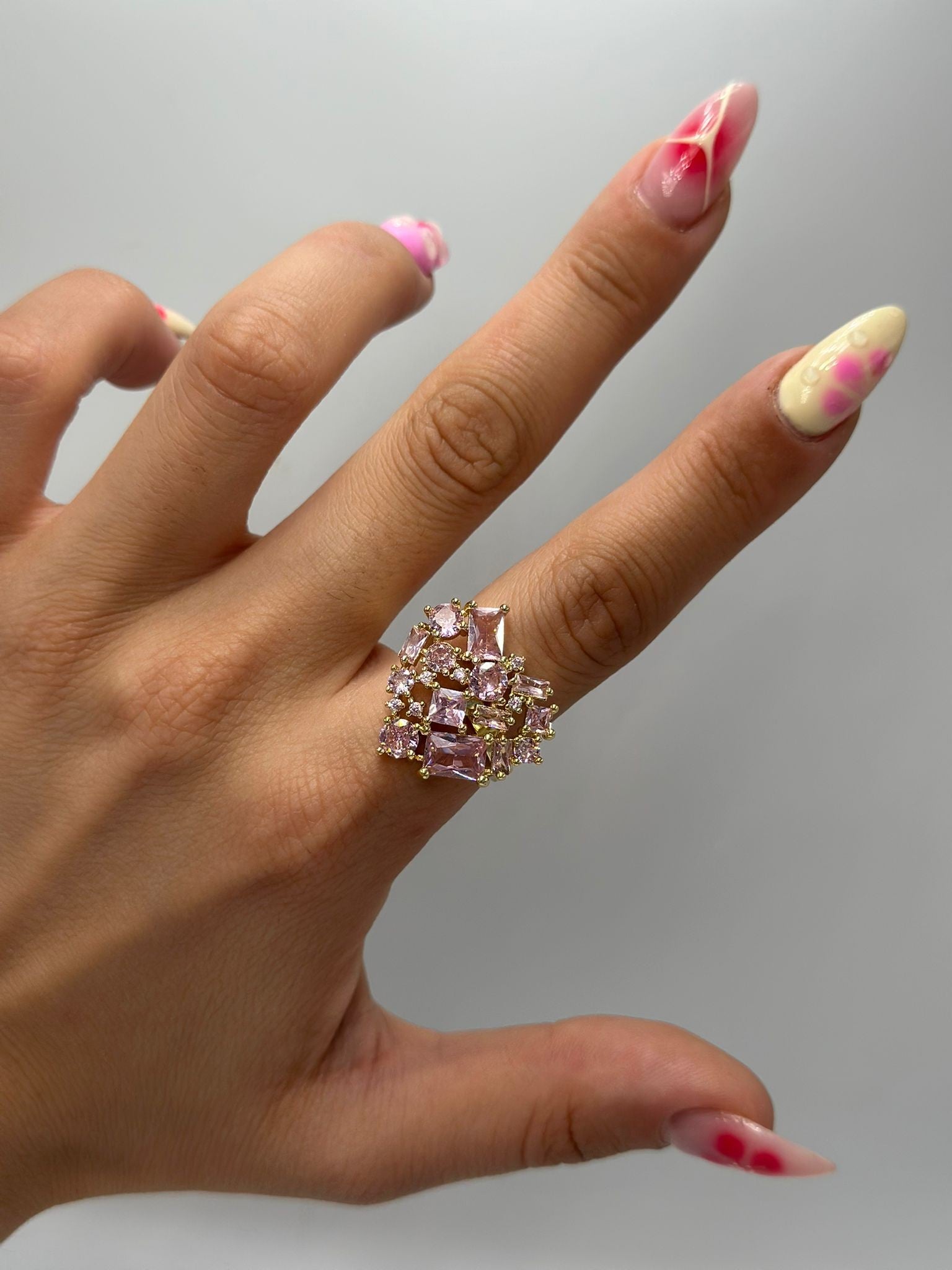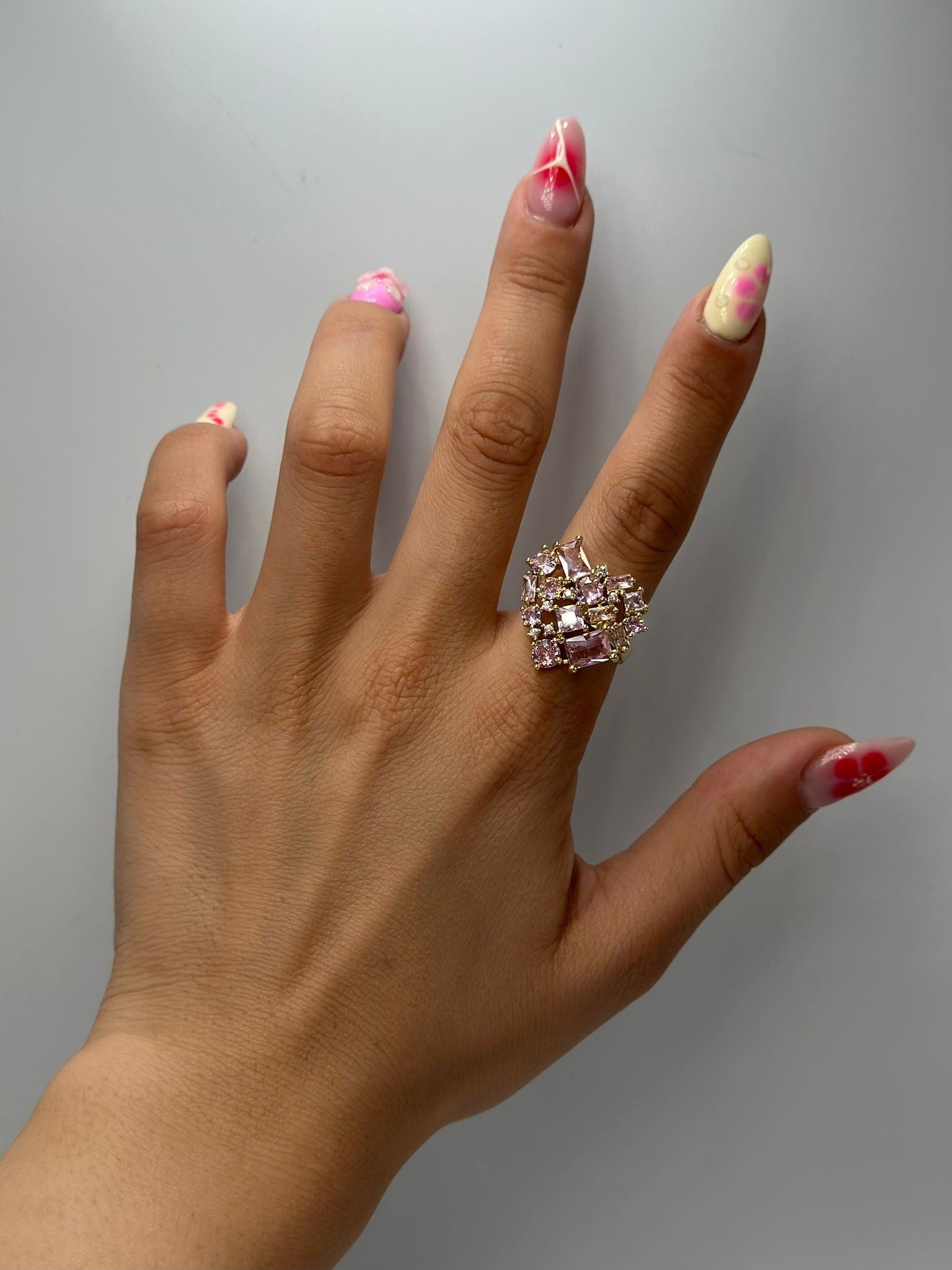 Pembe Zirkon Taş Detay Premium Kalp Yüzük