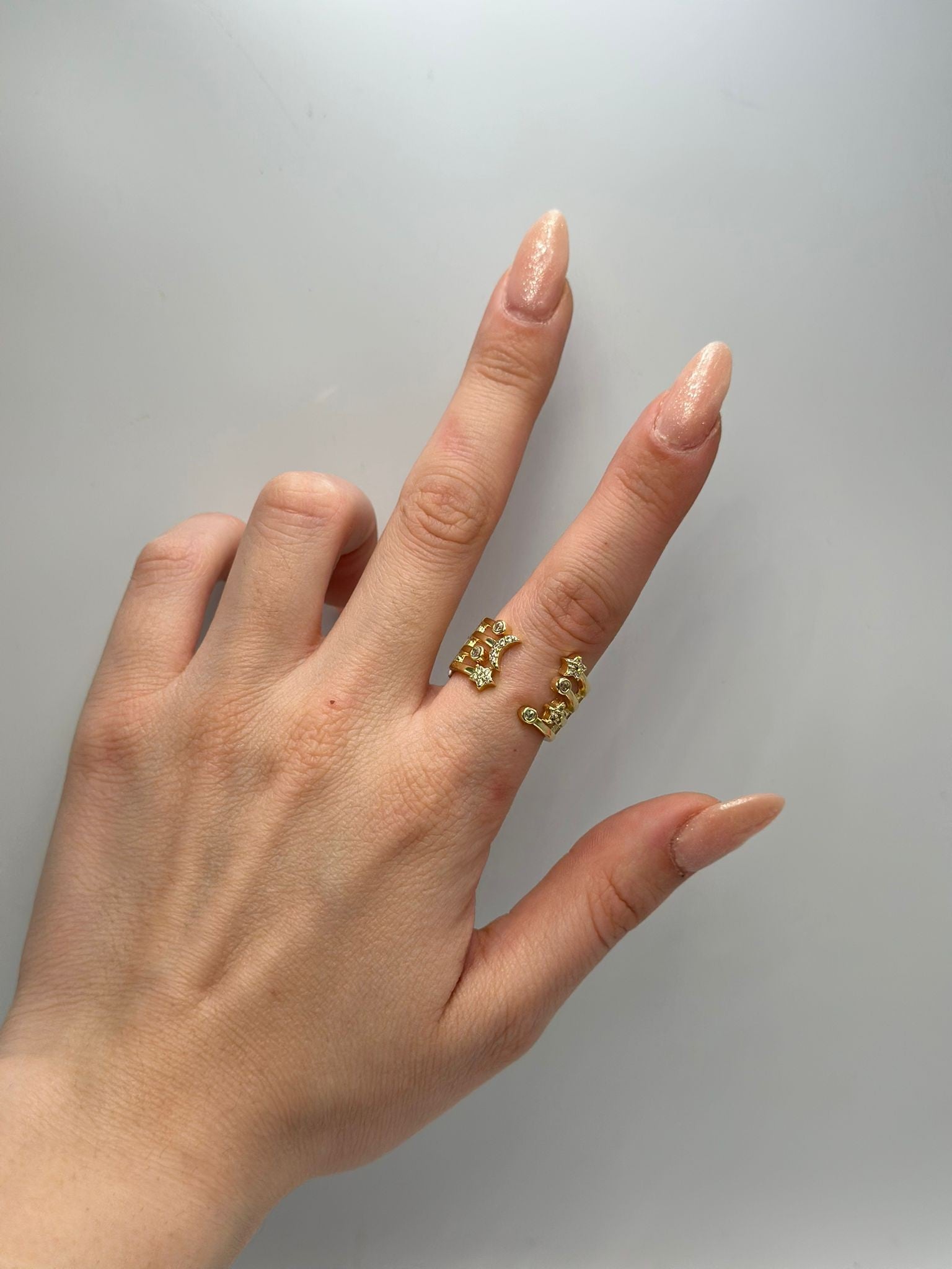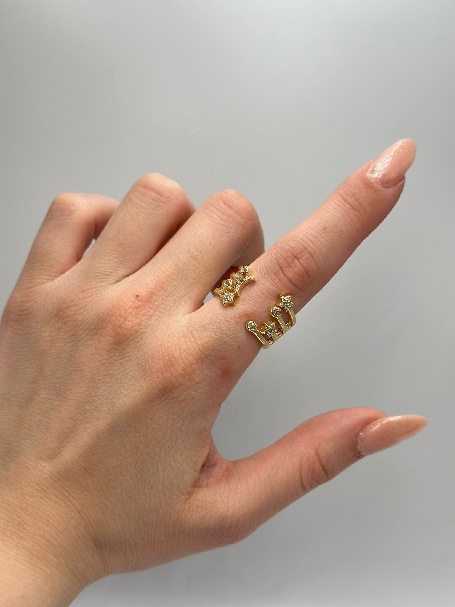 Pirinç Kaplama Ay Ve Yıldız Detay Asimetrik Yüzük