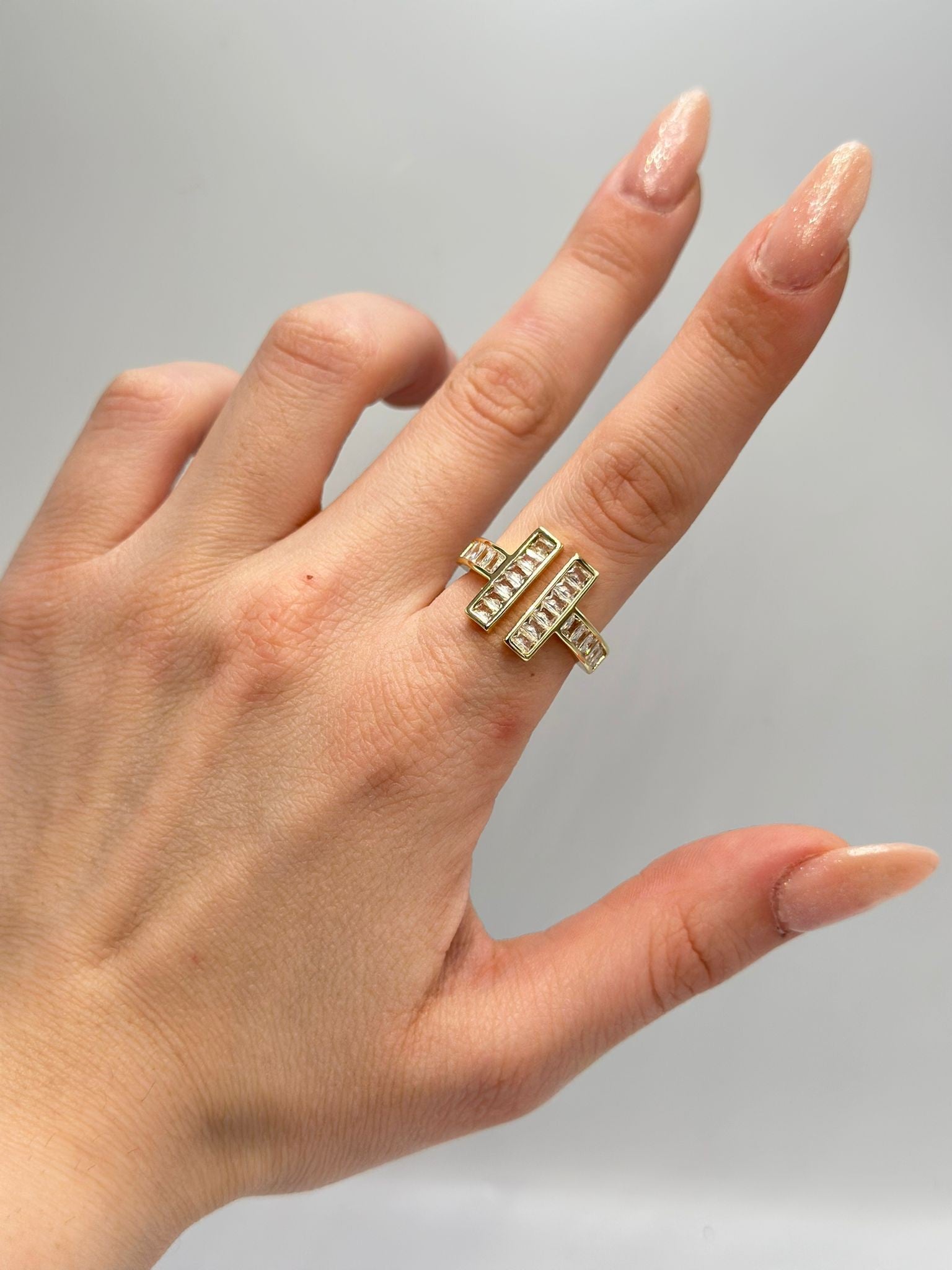 Pirinç Kaplama Zirkon Taş Detay Çift T Yüzük