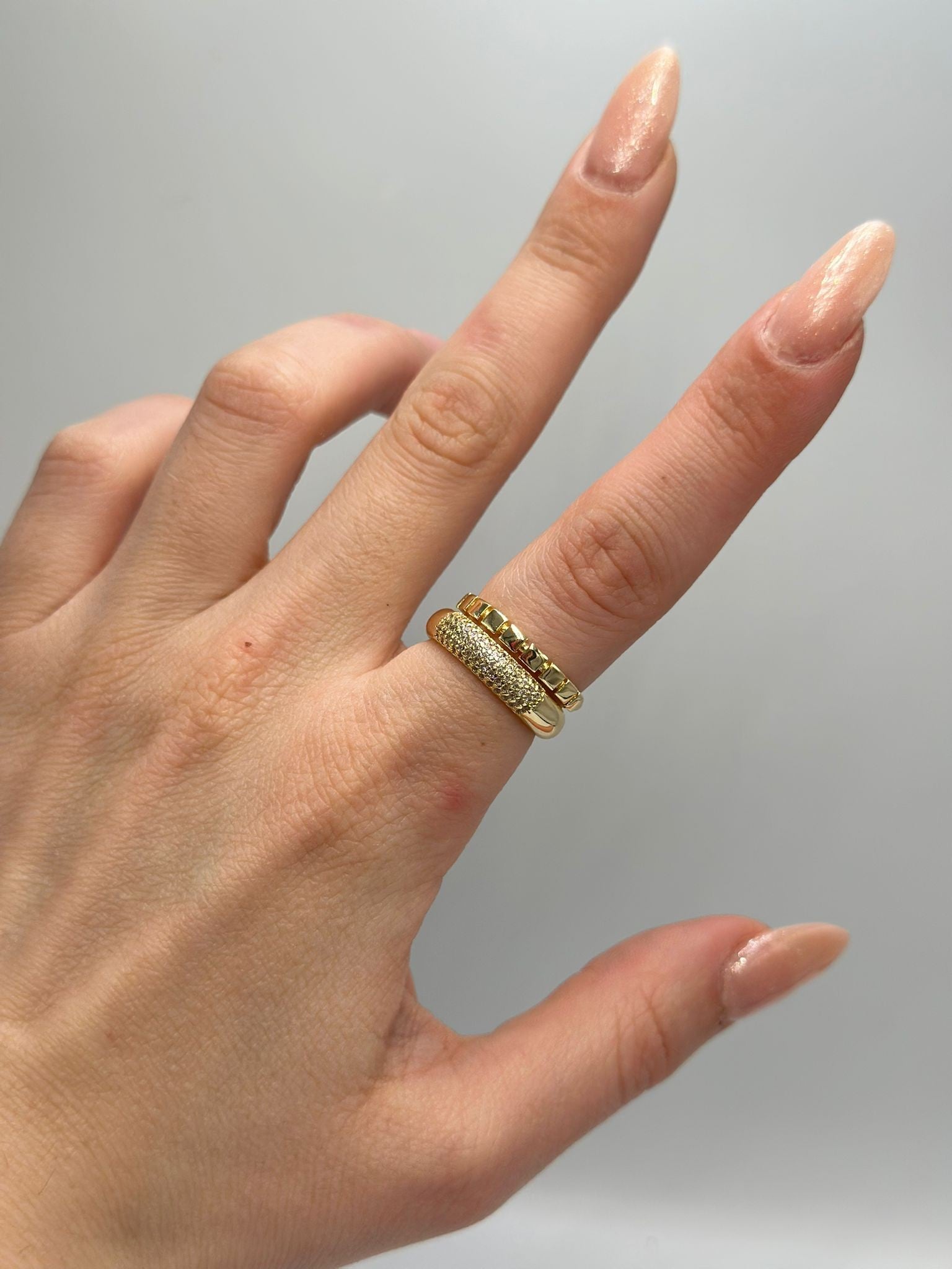 Pirinç Kaplama Zirkon Taşlı Plaka Detay Ayarlanabilir Yüzük