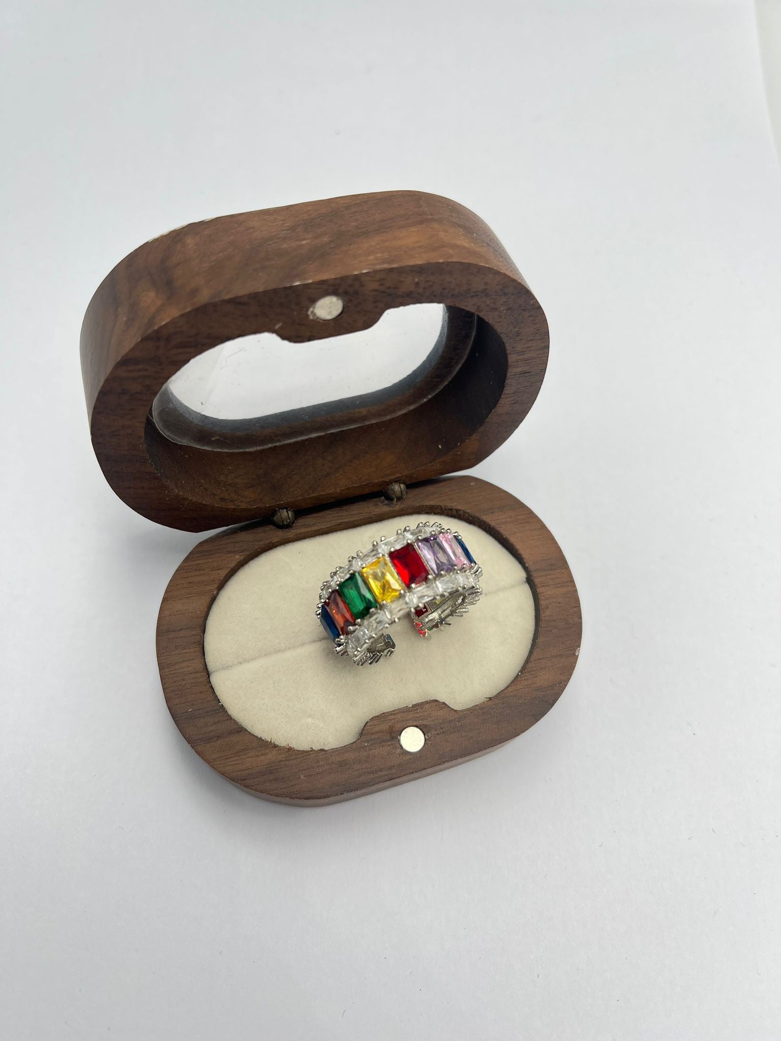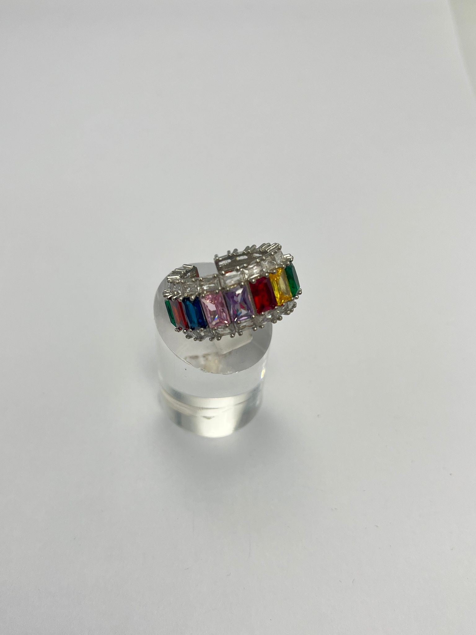 Renkli Baget Taş Detay Yüzük (Çelik)