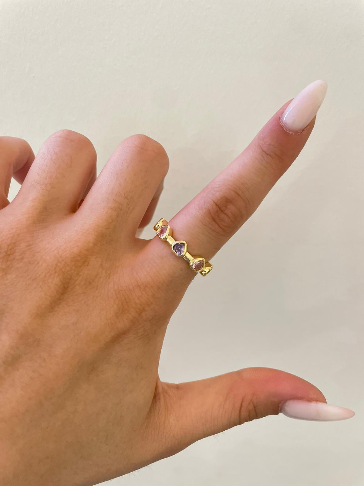 Renkli Sıralı Kalp Detay Yüzük (Çelik)
