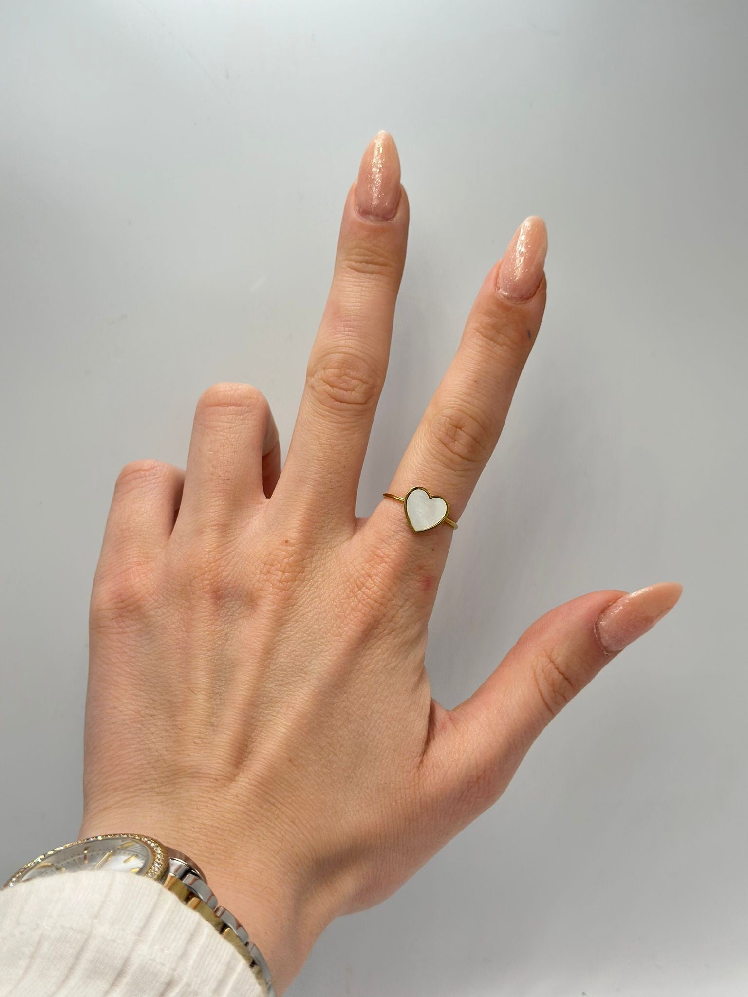 Sedefli Kalp Ayarlanabilir Çelik Yüzük