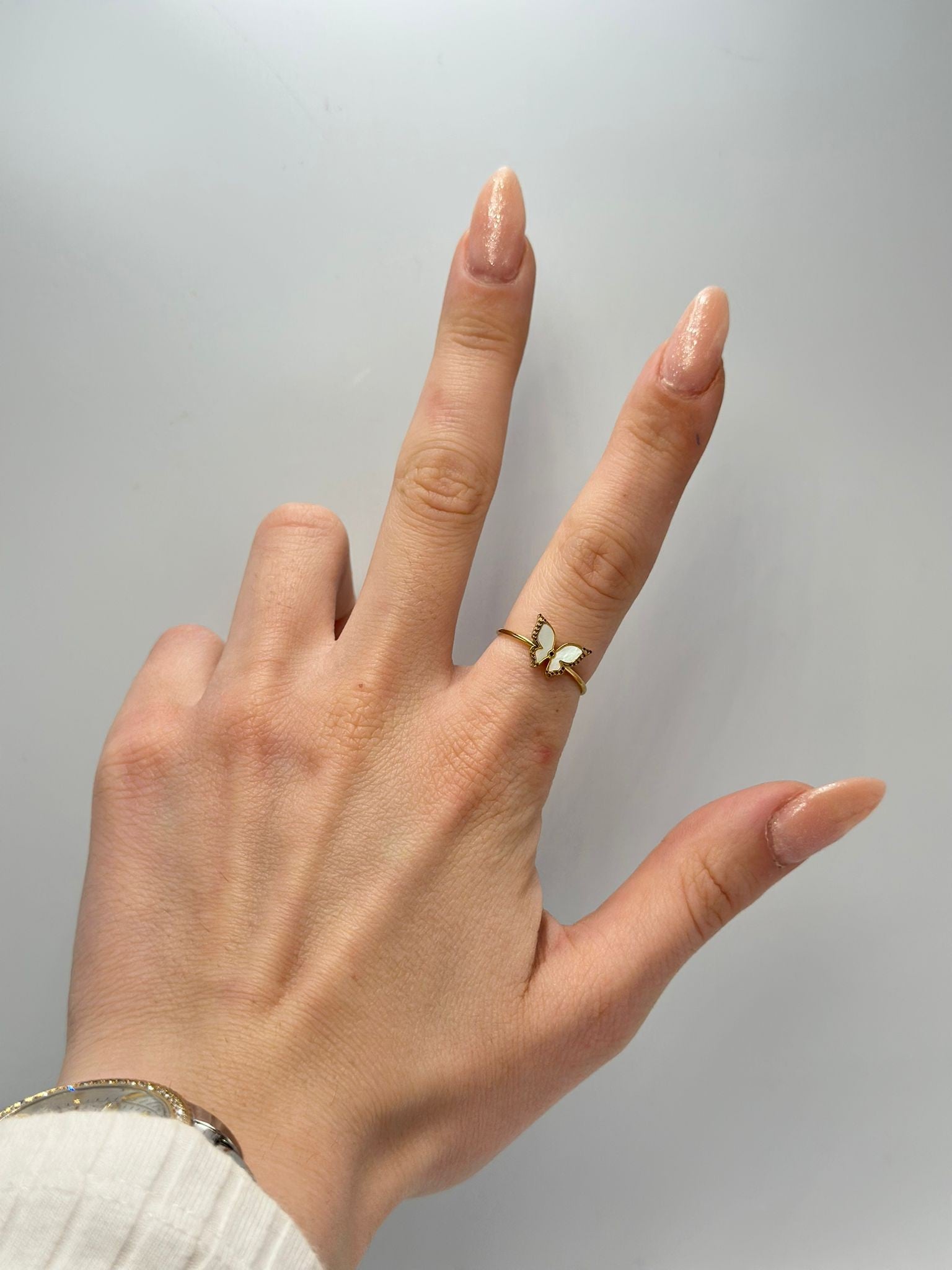 Sedefli Kelebek Ayarlanabilir Çelik Yüzük