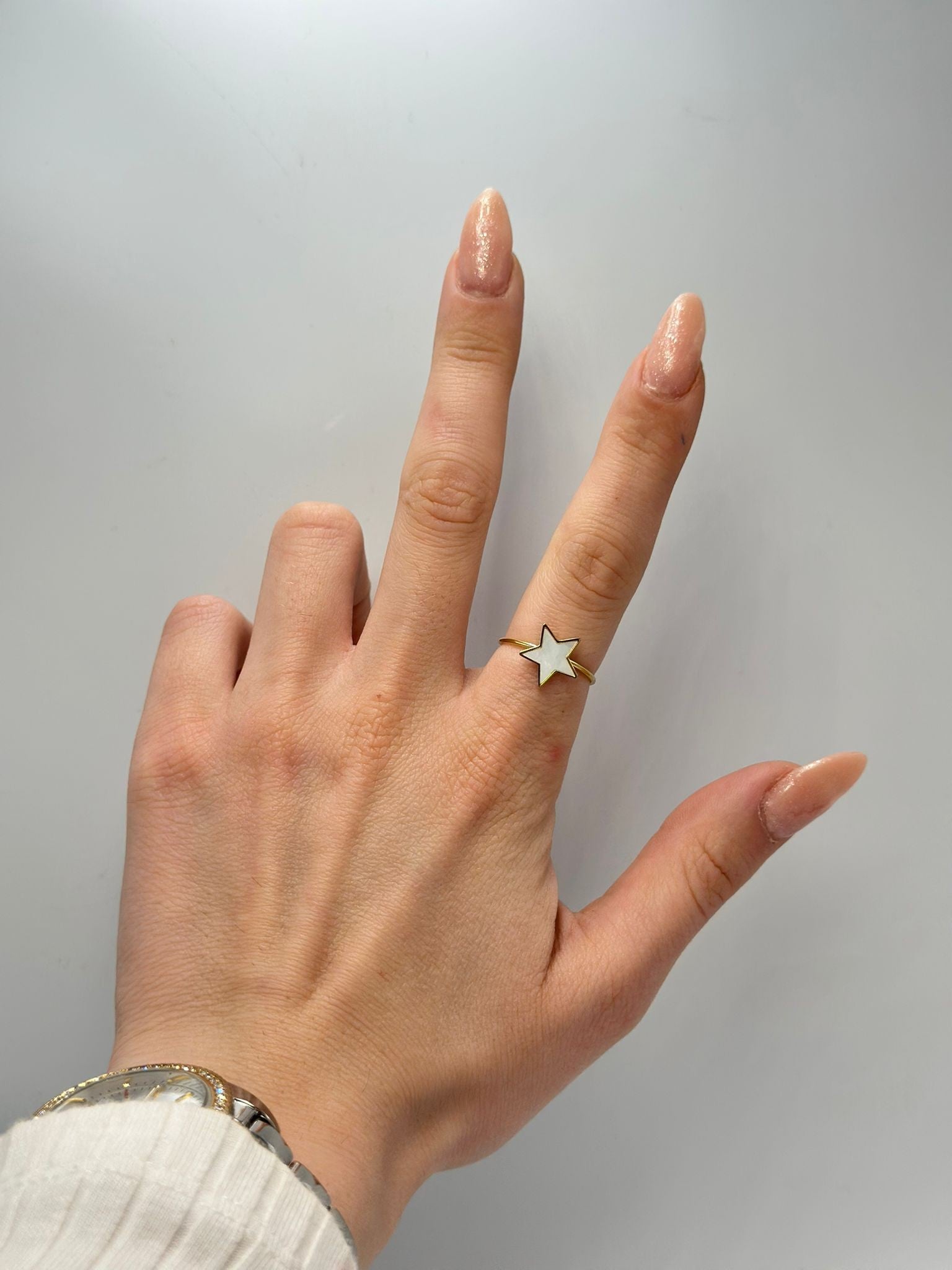Sedefli Yıldız Ayarlanabilir Çelik Yüzük
