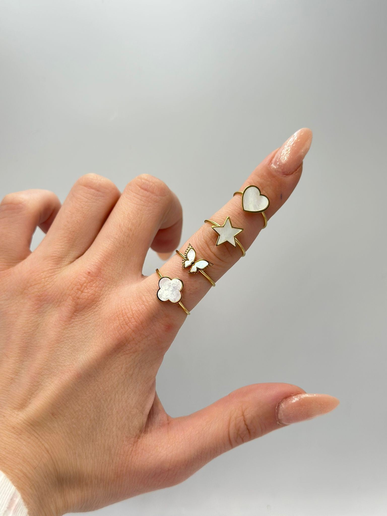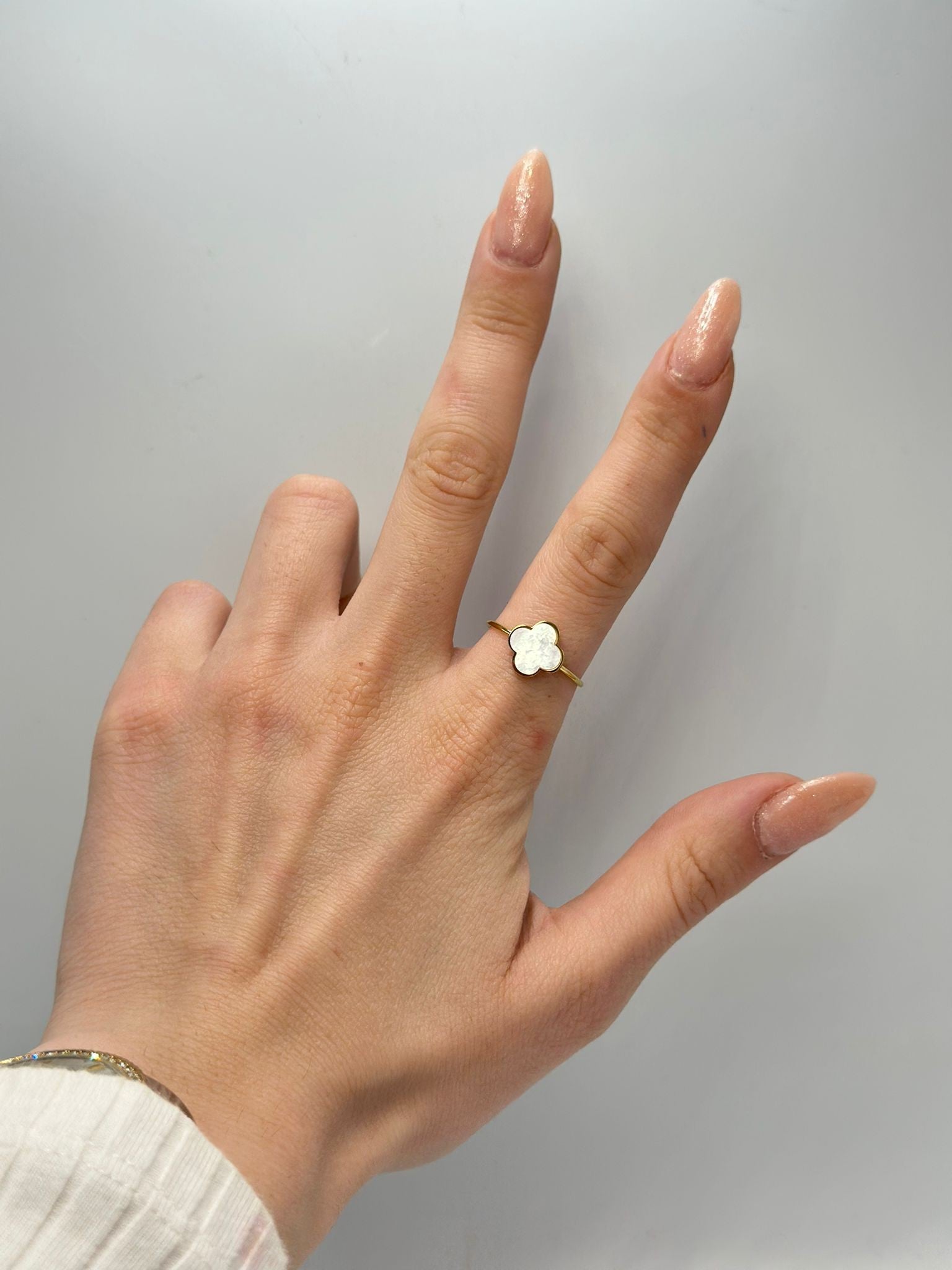 Sedefli Yonca Ayarlanabilir Çelik Yüzük
