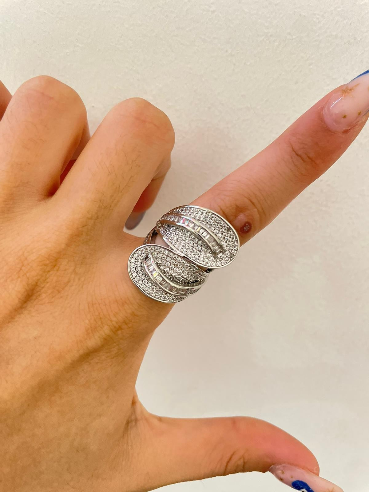 Tasarım Full Zirkon Yaprak Yüzük (Gümüş Kaplama)