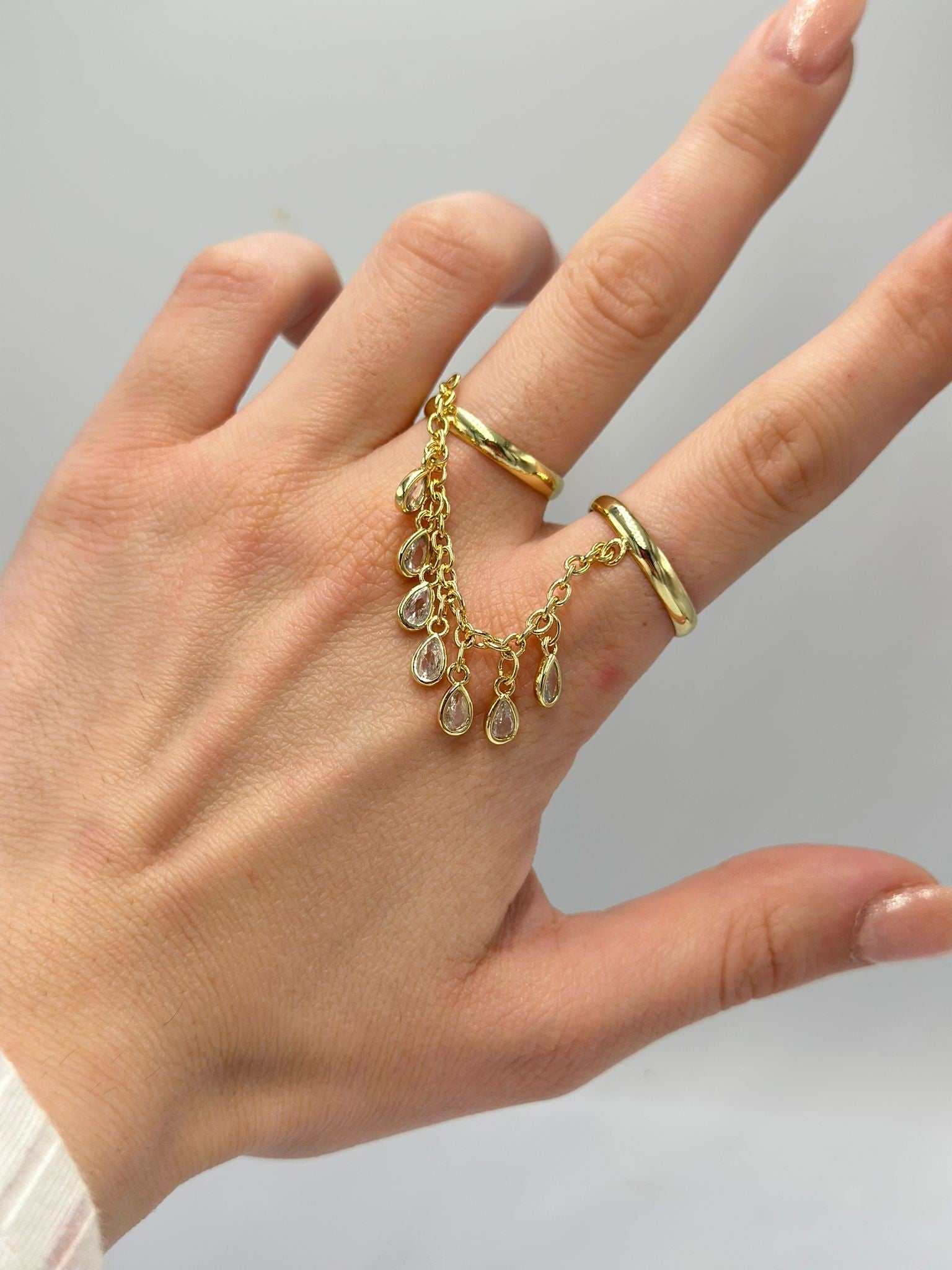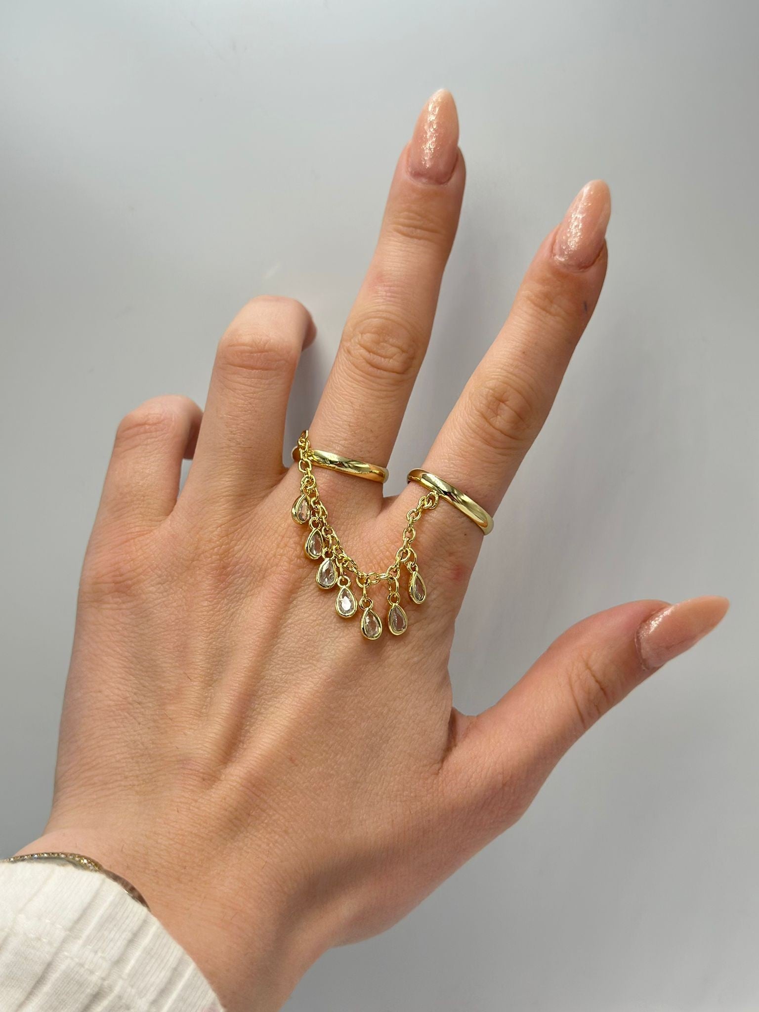 Tasarım İkili Sallantılı Damla Detay Çelik Yüzük