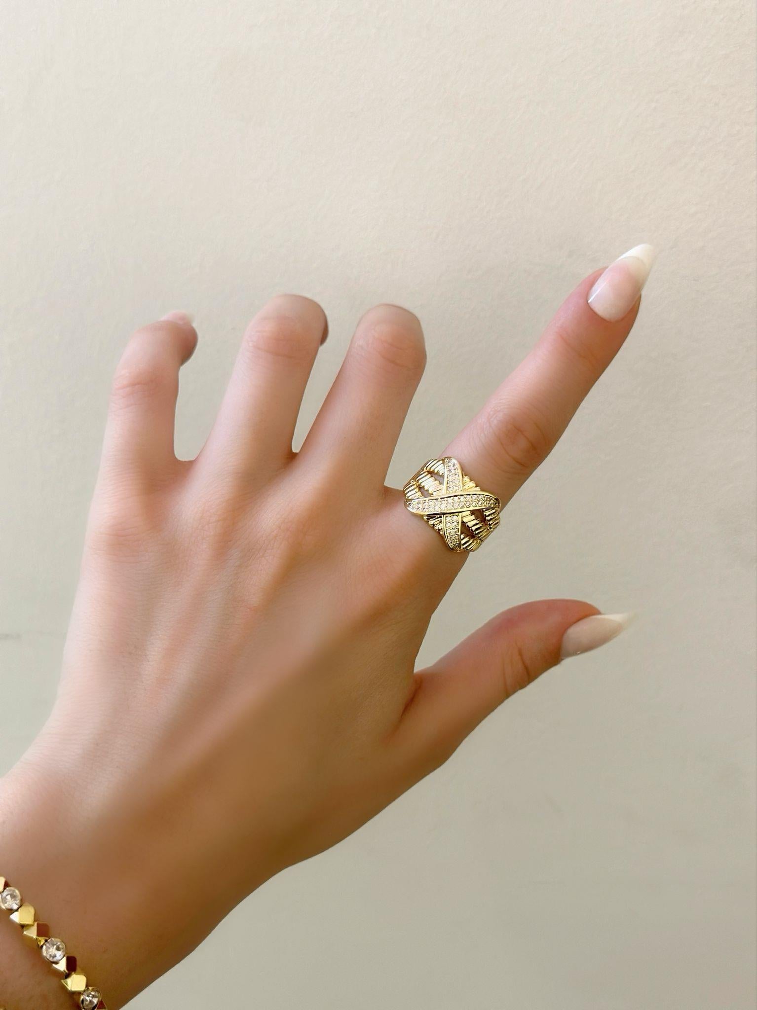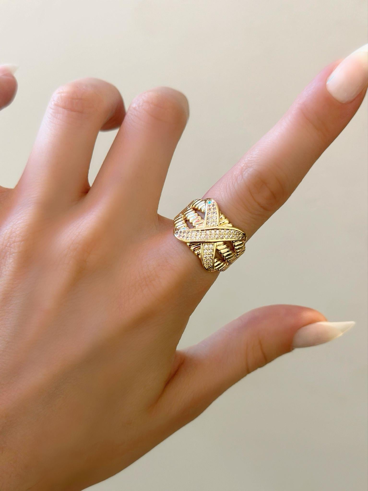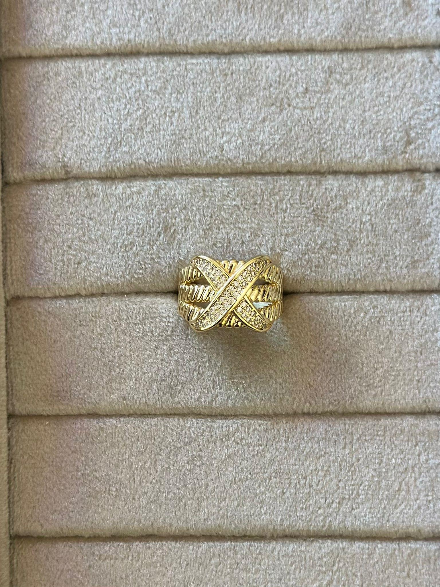 Zirkon Taş Detaylı Kalın X Yüzük (Pirinç)