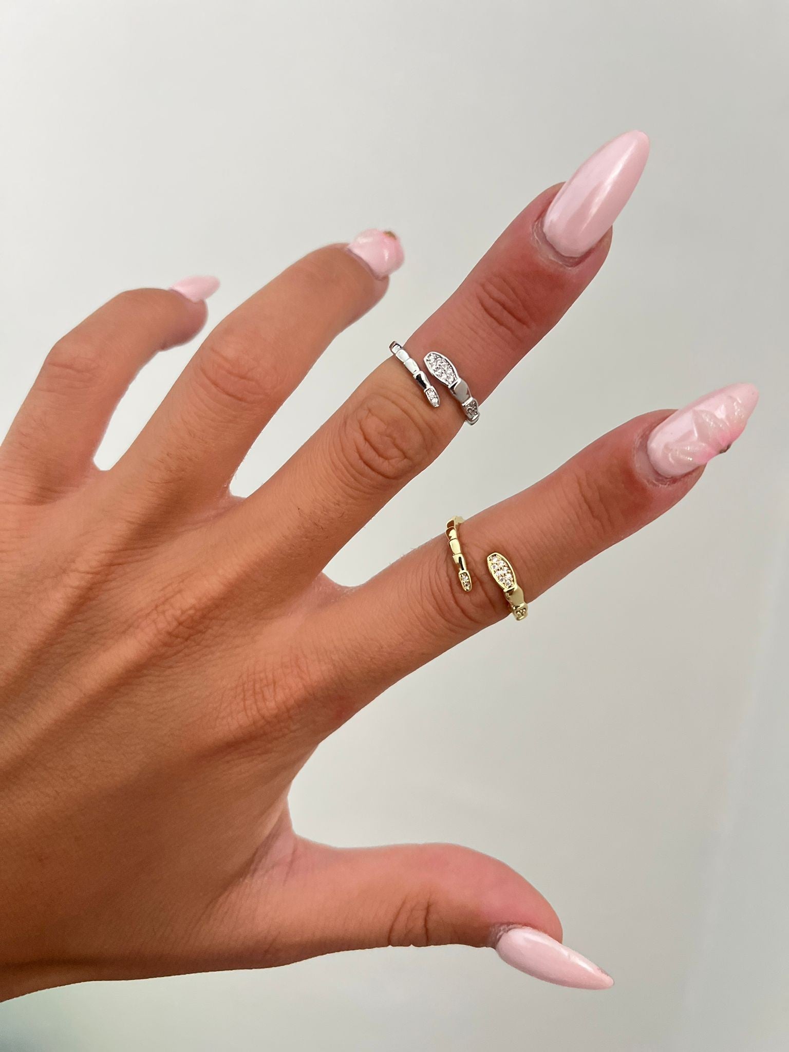 Zirkon Taş Detaylı Yılan Ayarlanabilir Eklem Yüzüğü