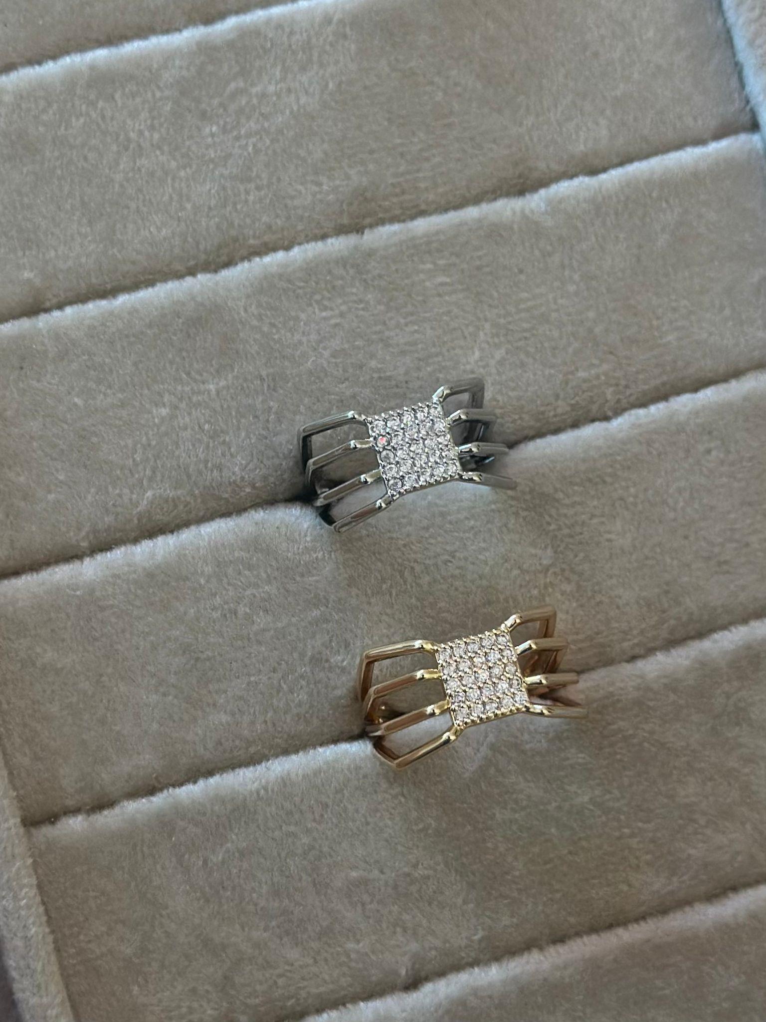 Zirkon Taş Kare Detay Ayarlanabilir Yüzük (Pirinç Kaplama)