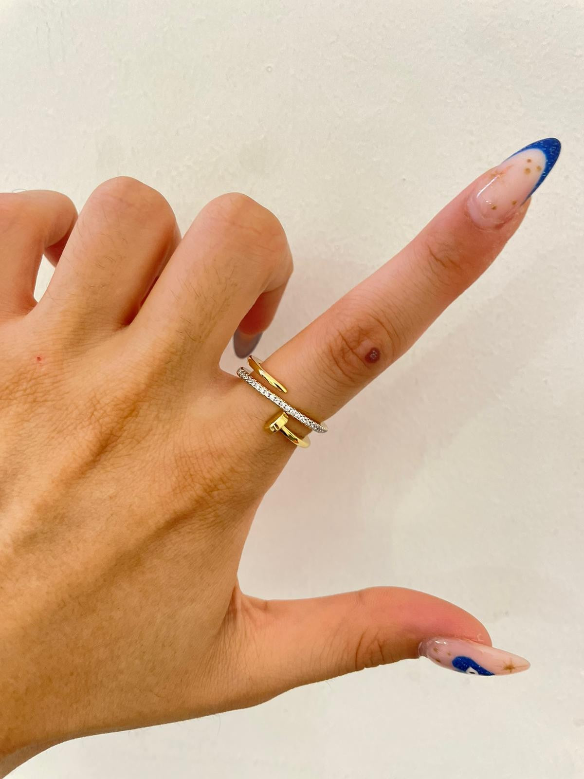 Zirkon Taş Ve Çivi Detay Çelik Yüzük