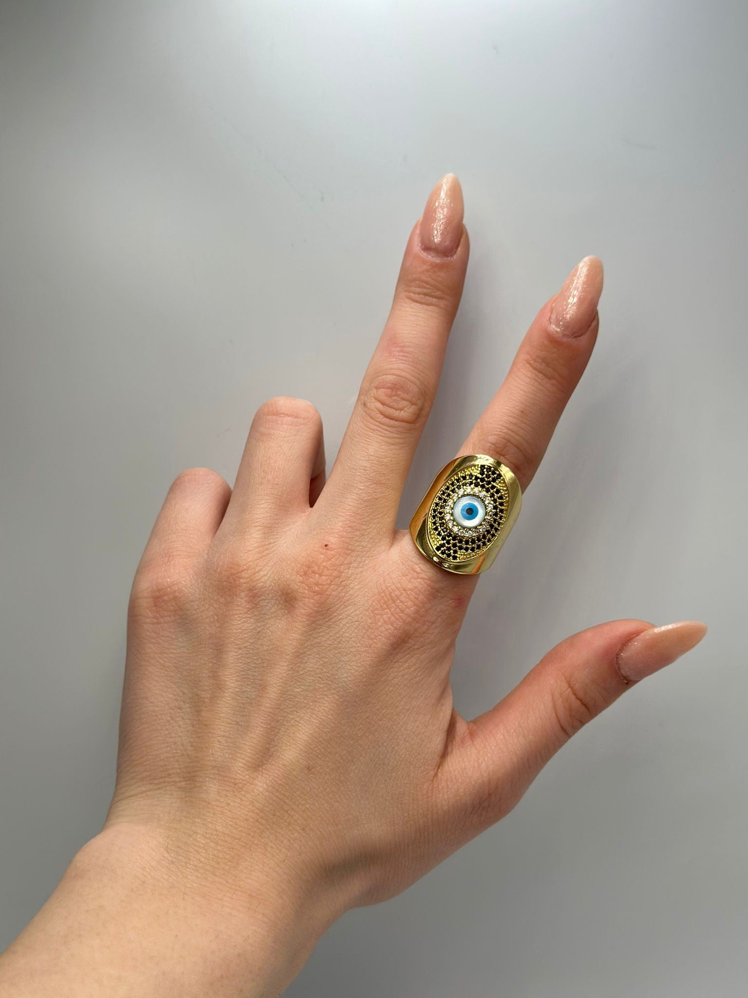 Zirkon Taş ve Nazar Boncuğu Detaylı Ayarlamalı Yüzük