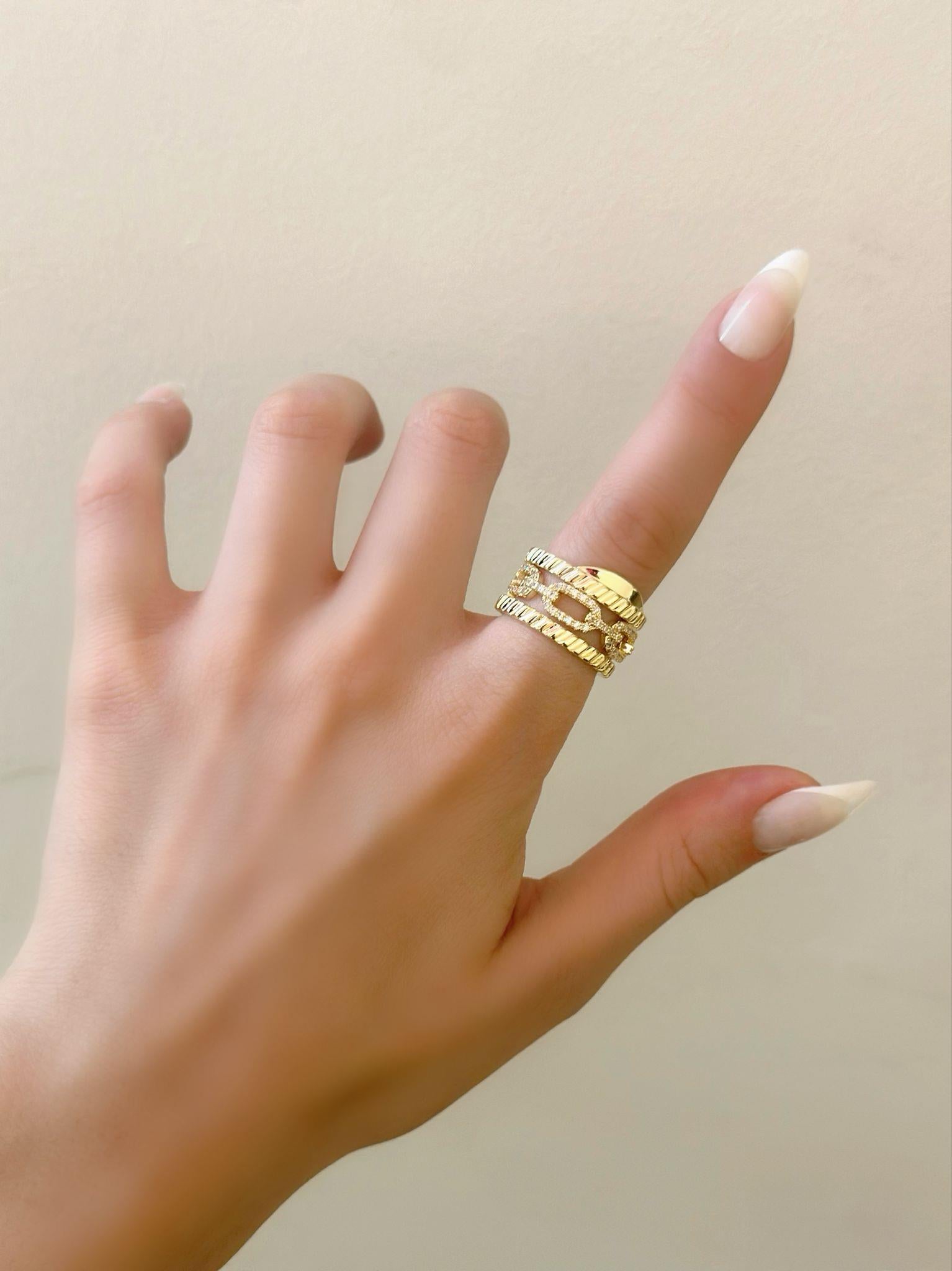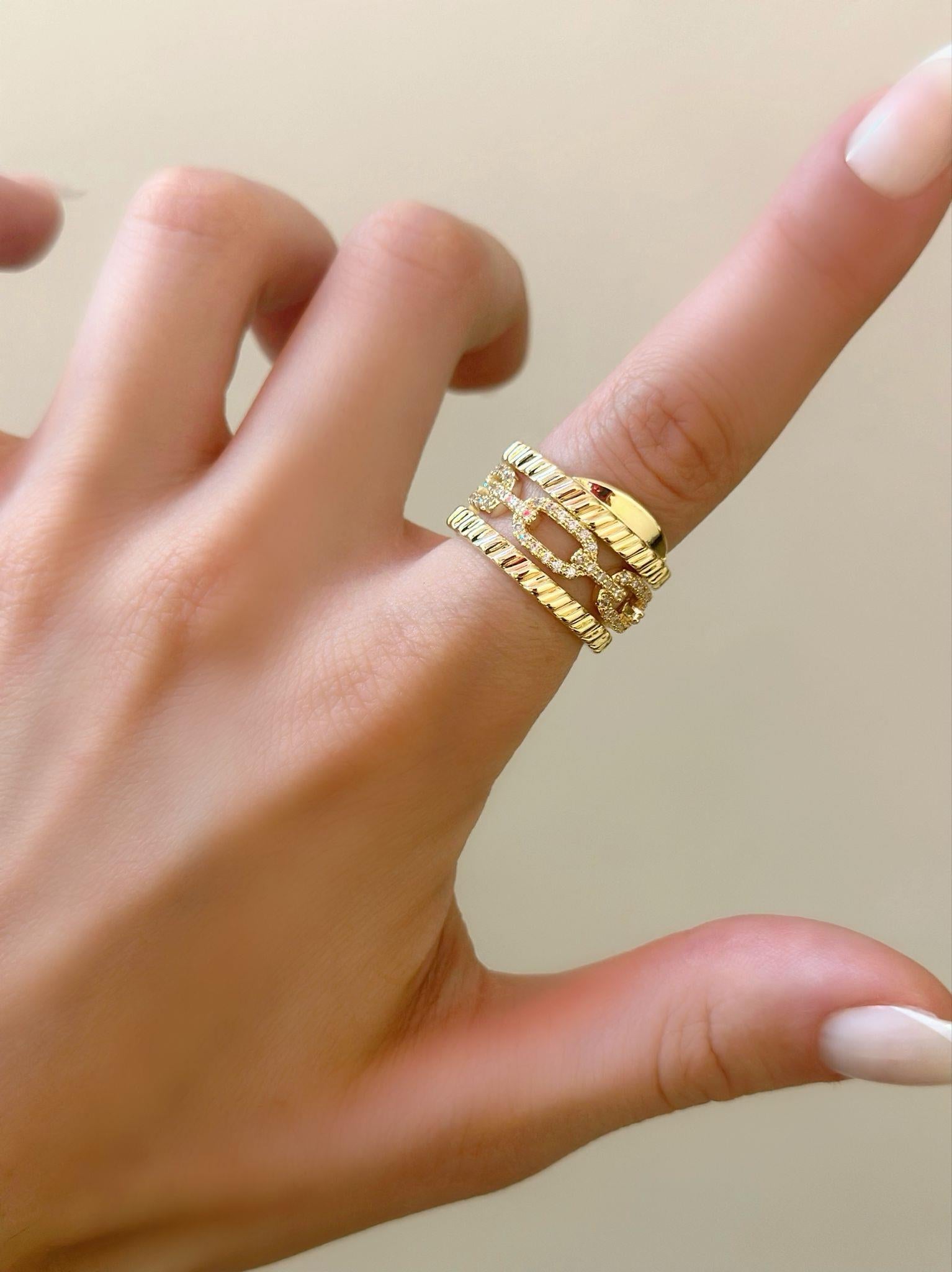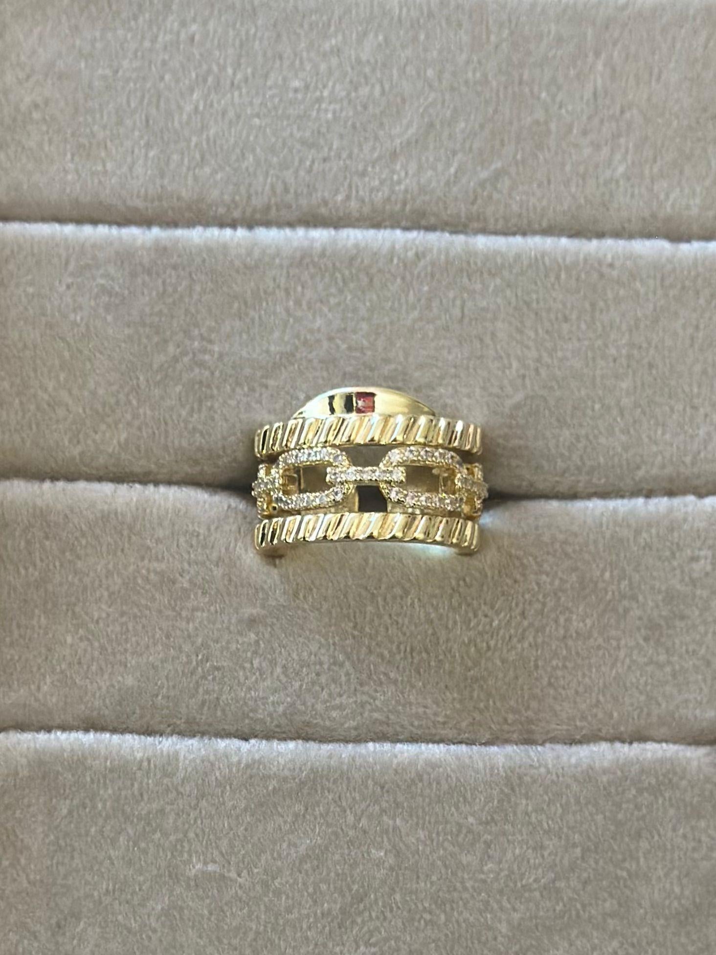 Zirkon Taşlı Zincir Model Yüzük (Pirinç)