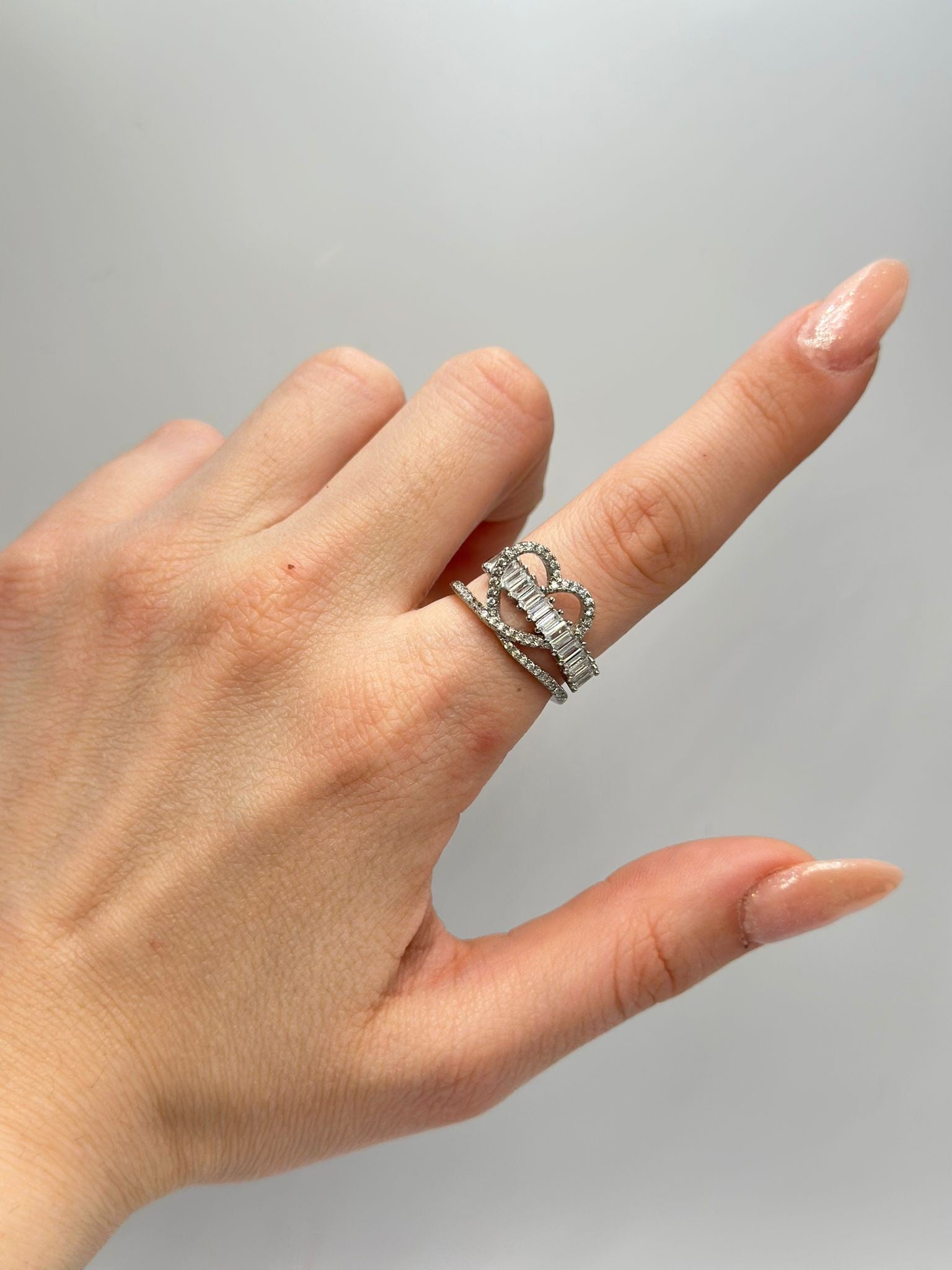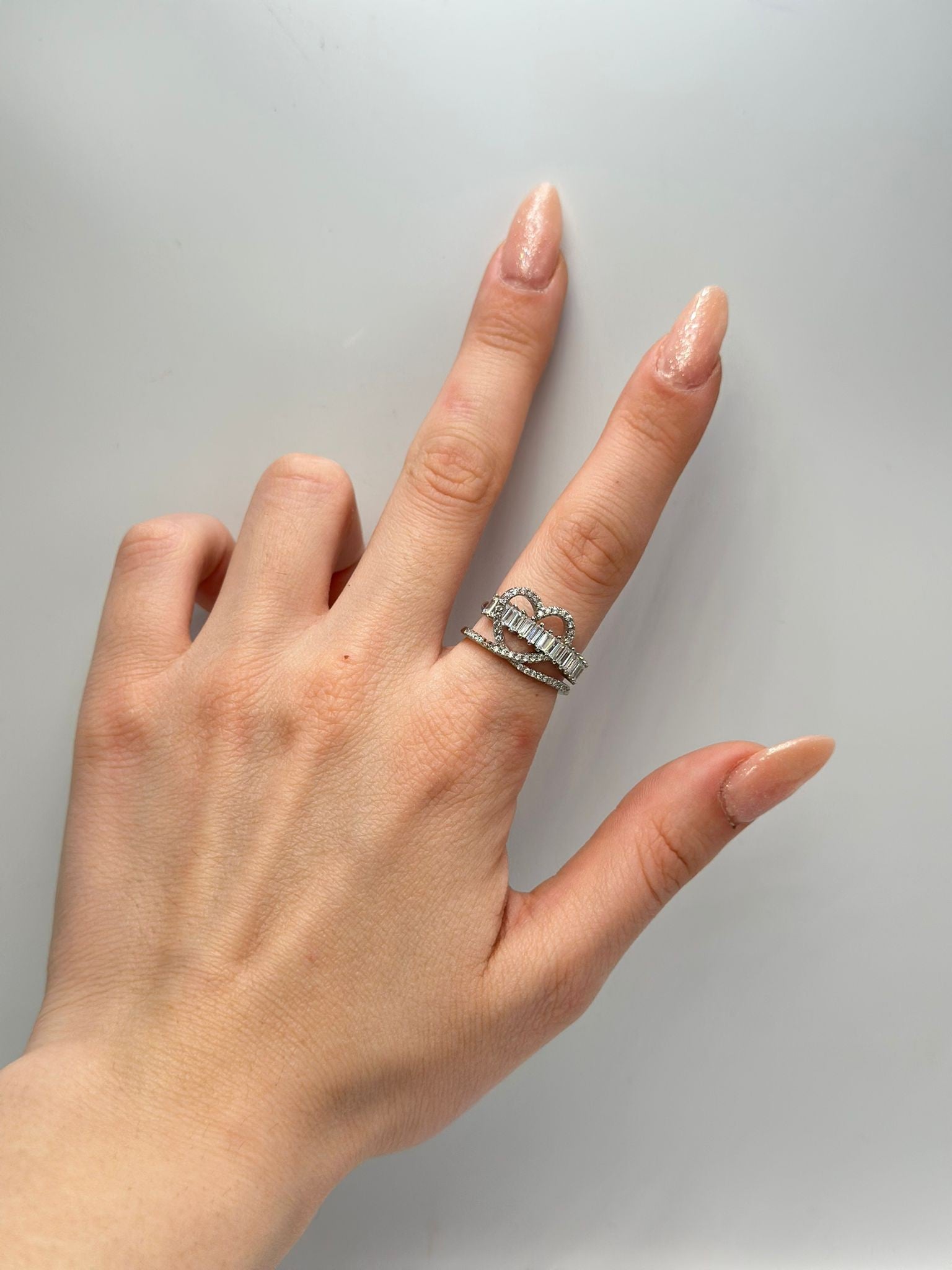 Zirkon ve Baget Taş Detaylı Kalp Ayarlamalı Yüzük