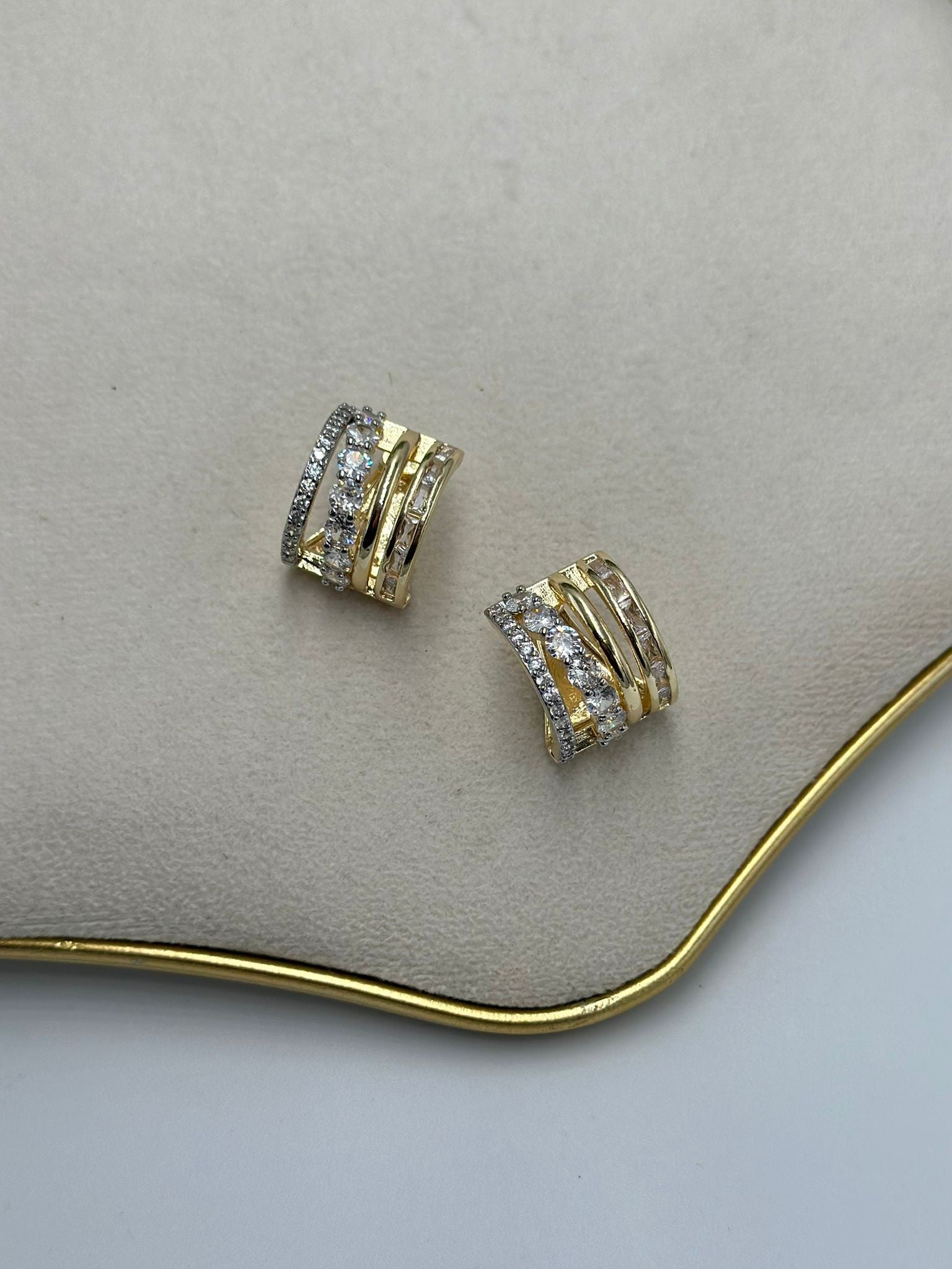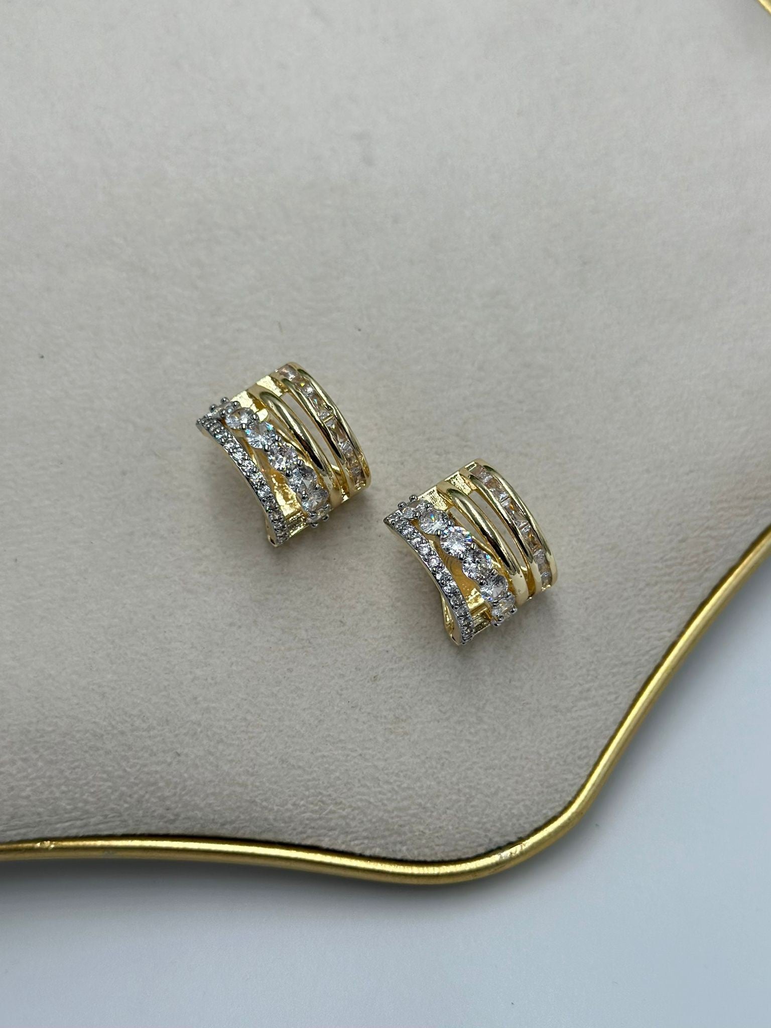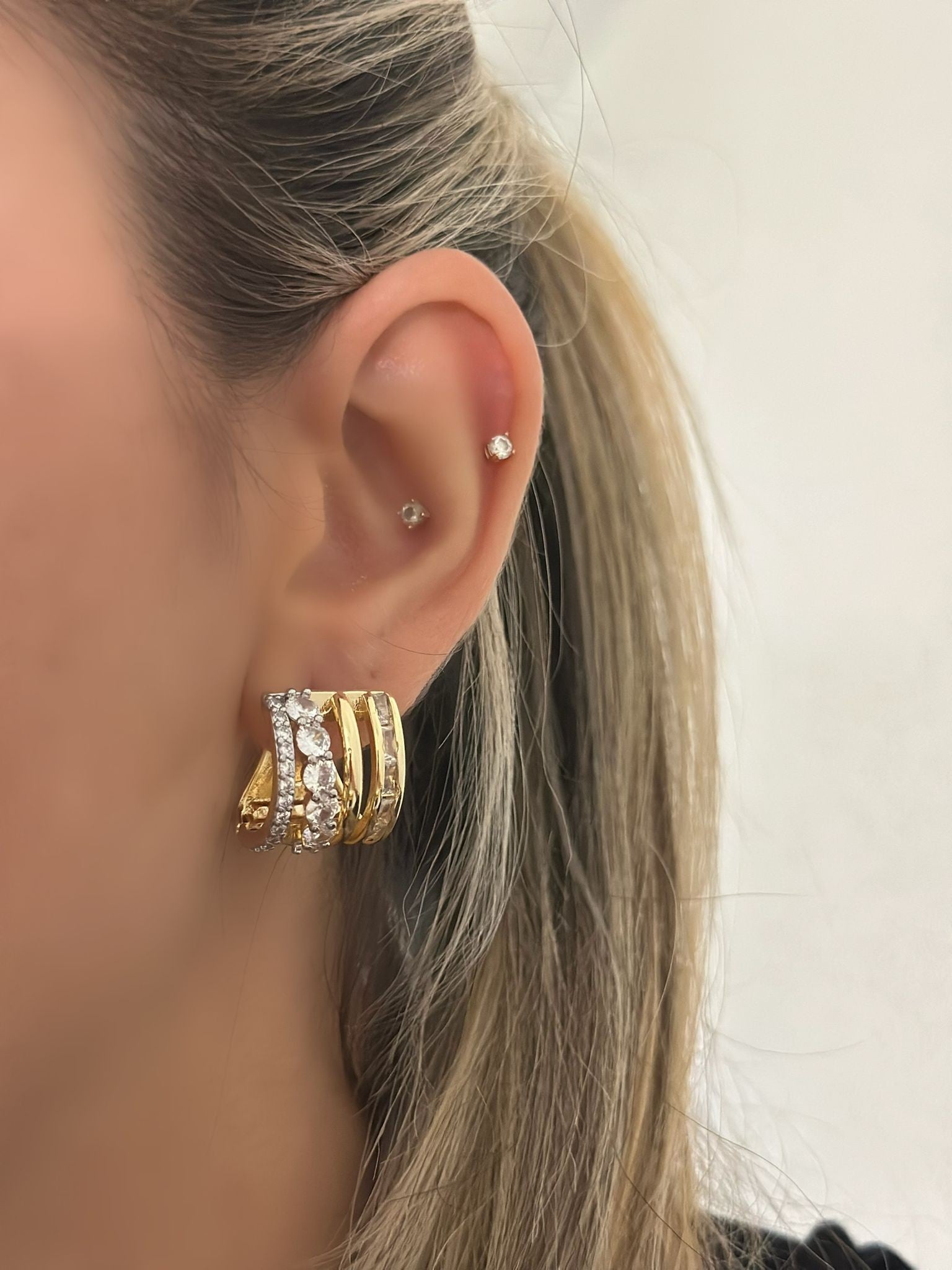 3 Sıra Tek Taş Detaylı Halka Küpe (Çelik)