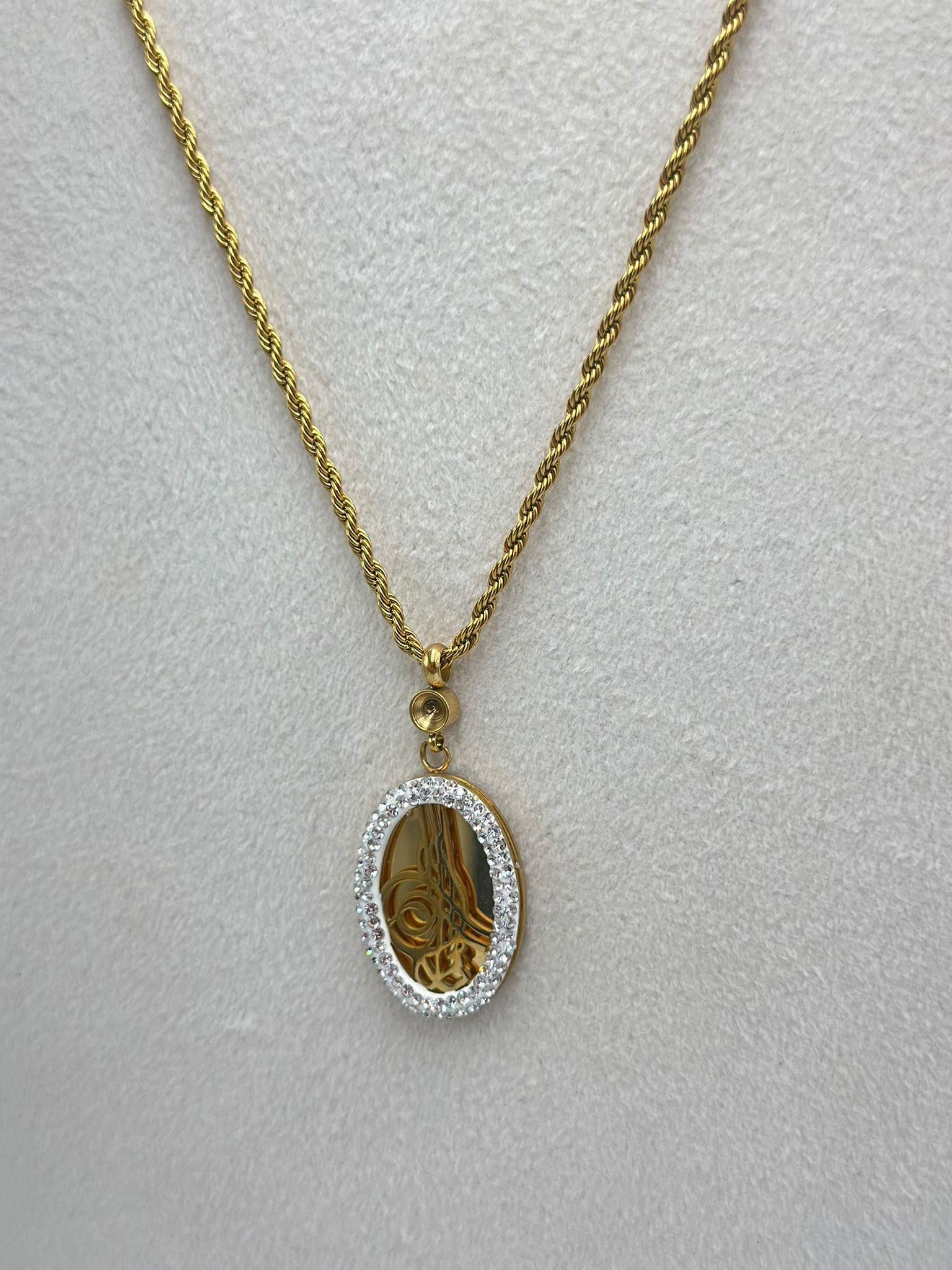 Burgu Zincir ve Zirkon Taş Detaylı 18K Altın Kaplama Tuğra  Kolye