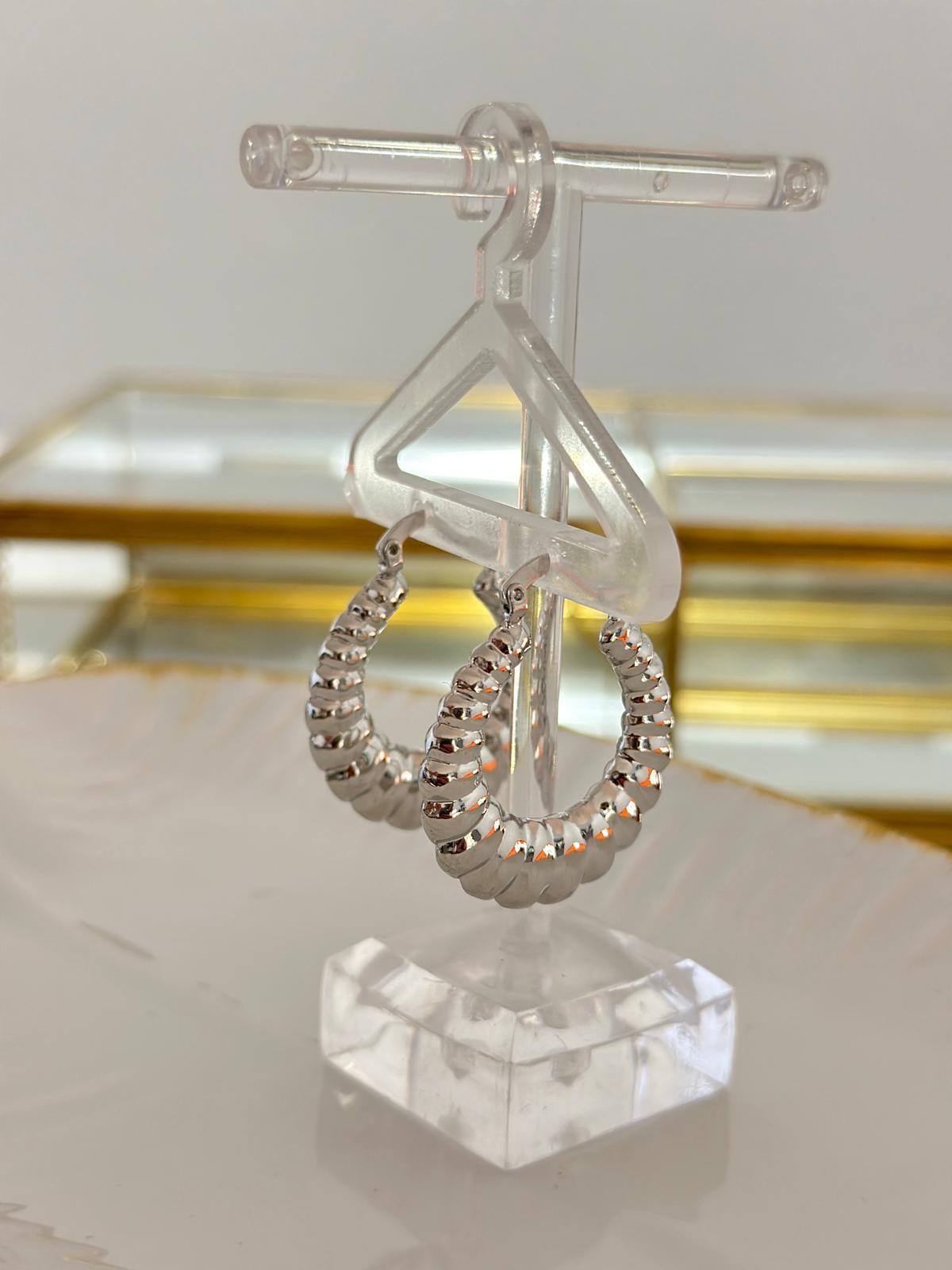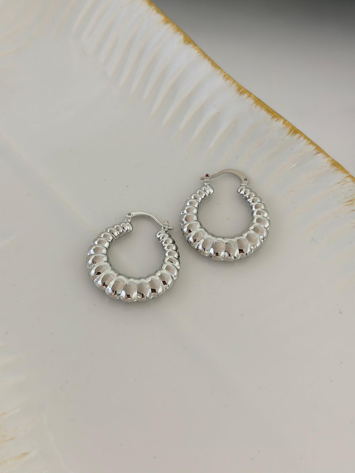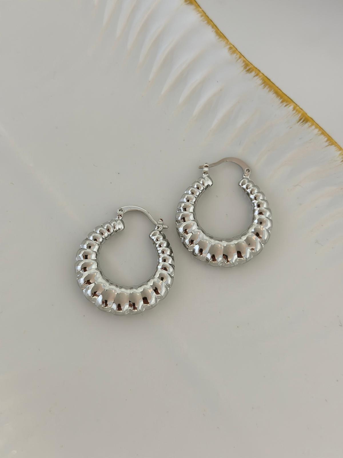 Oval Plaka Detaylı Çelik Halka Küpe