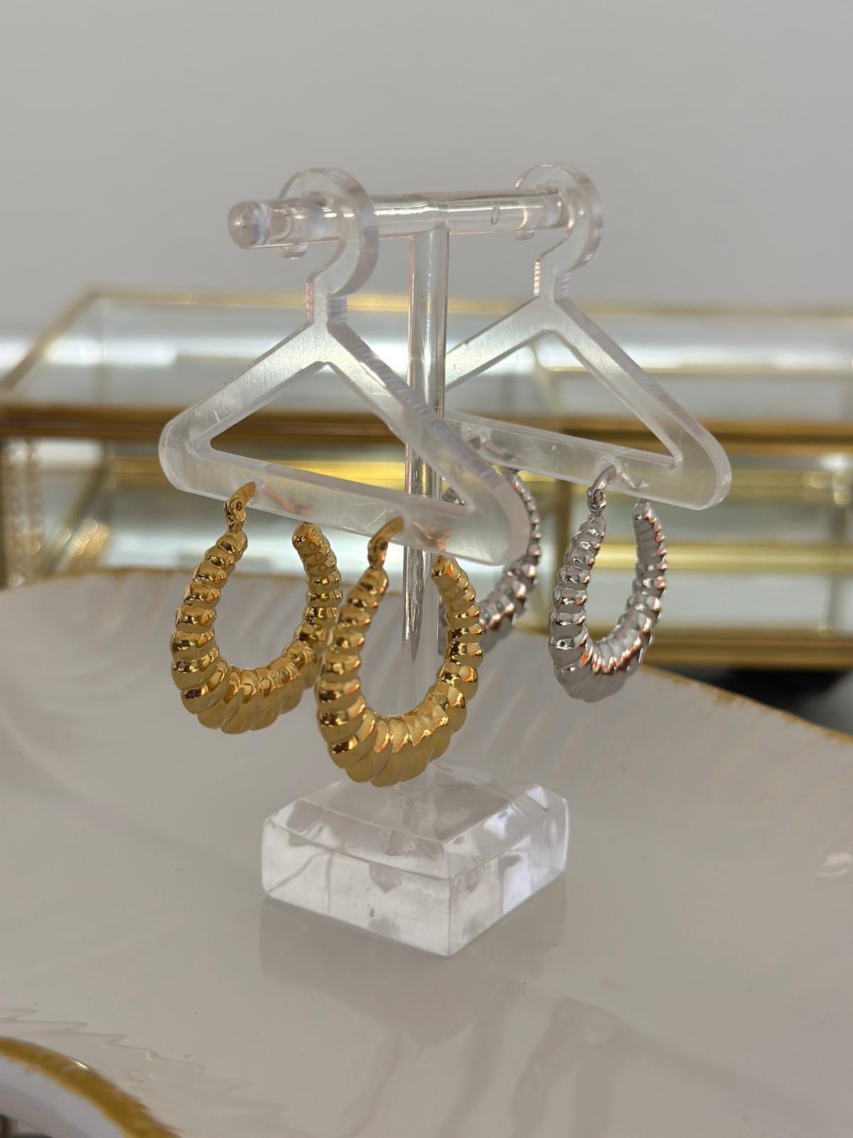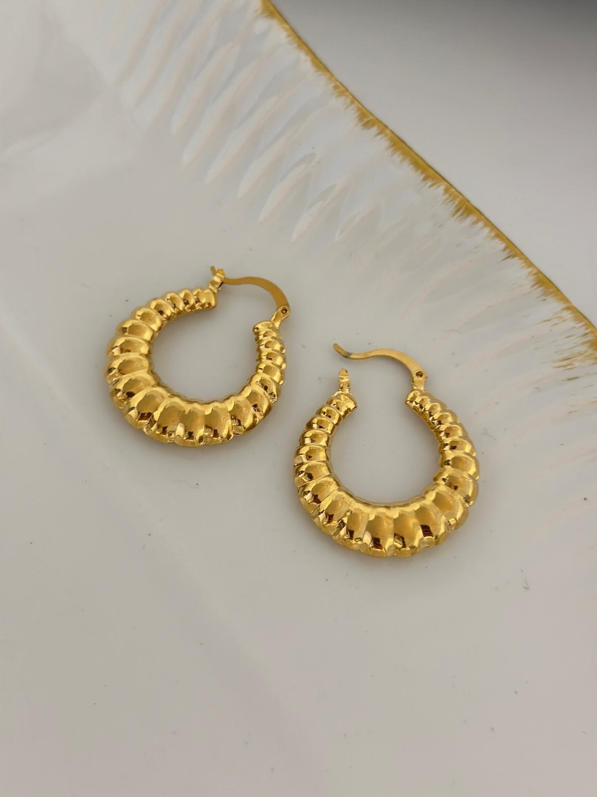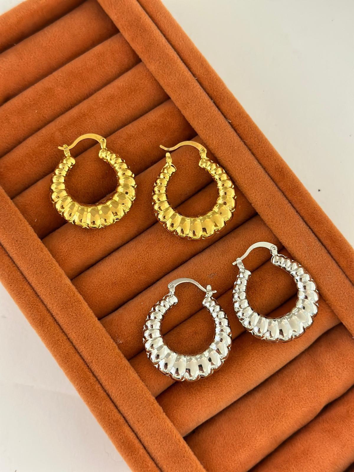 Oval Plaka Detaylı Çelik Halka Küpe