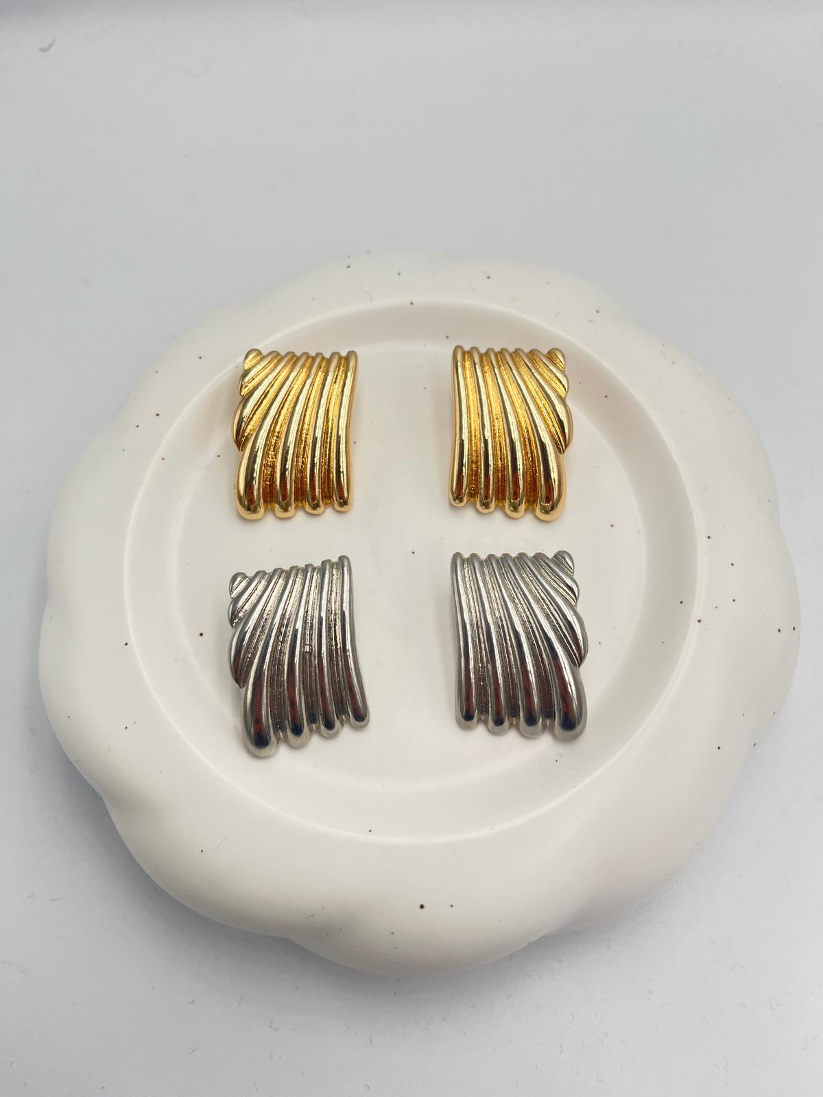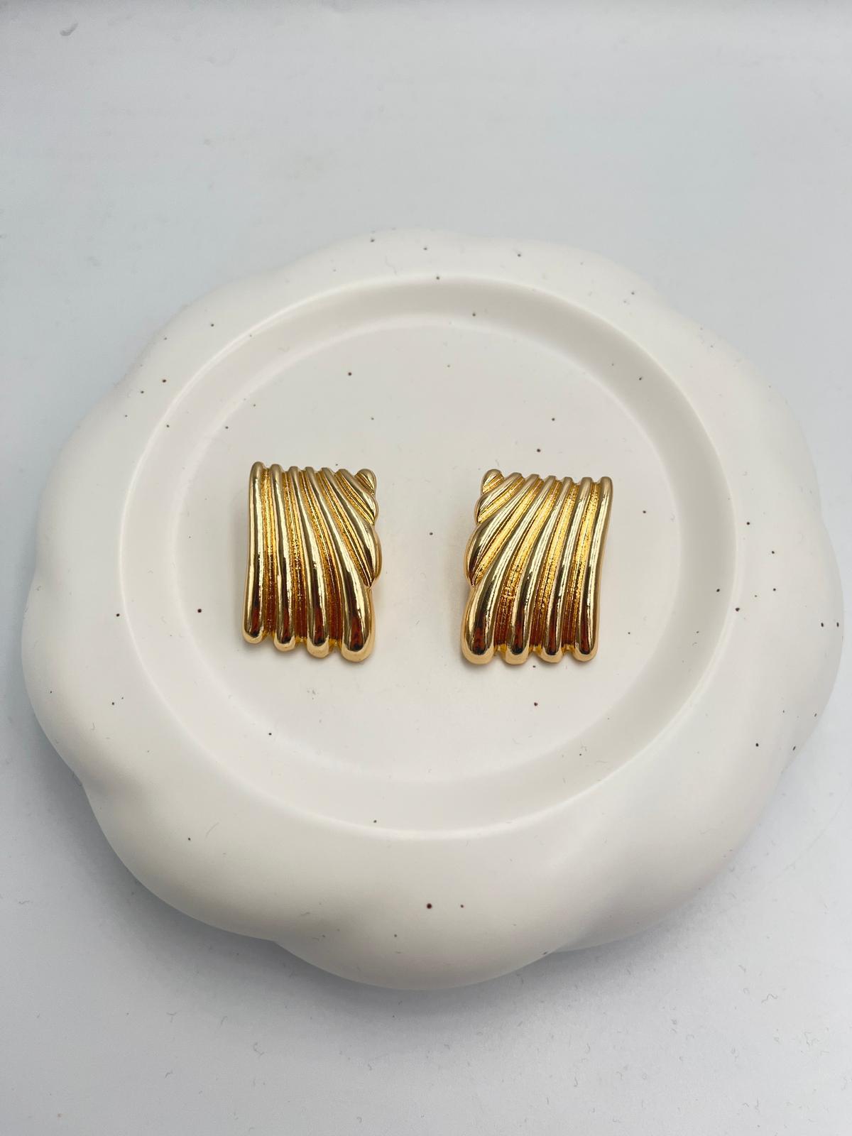 Pirinç Kaplama Kabartmalı Plaka Detaylı Orta Boy Küpe