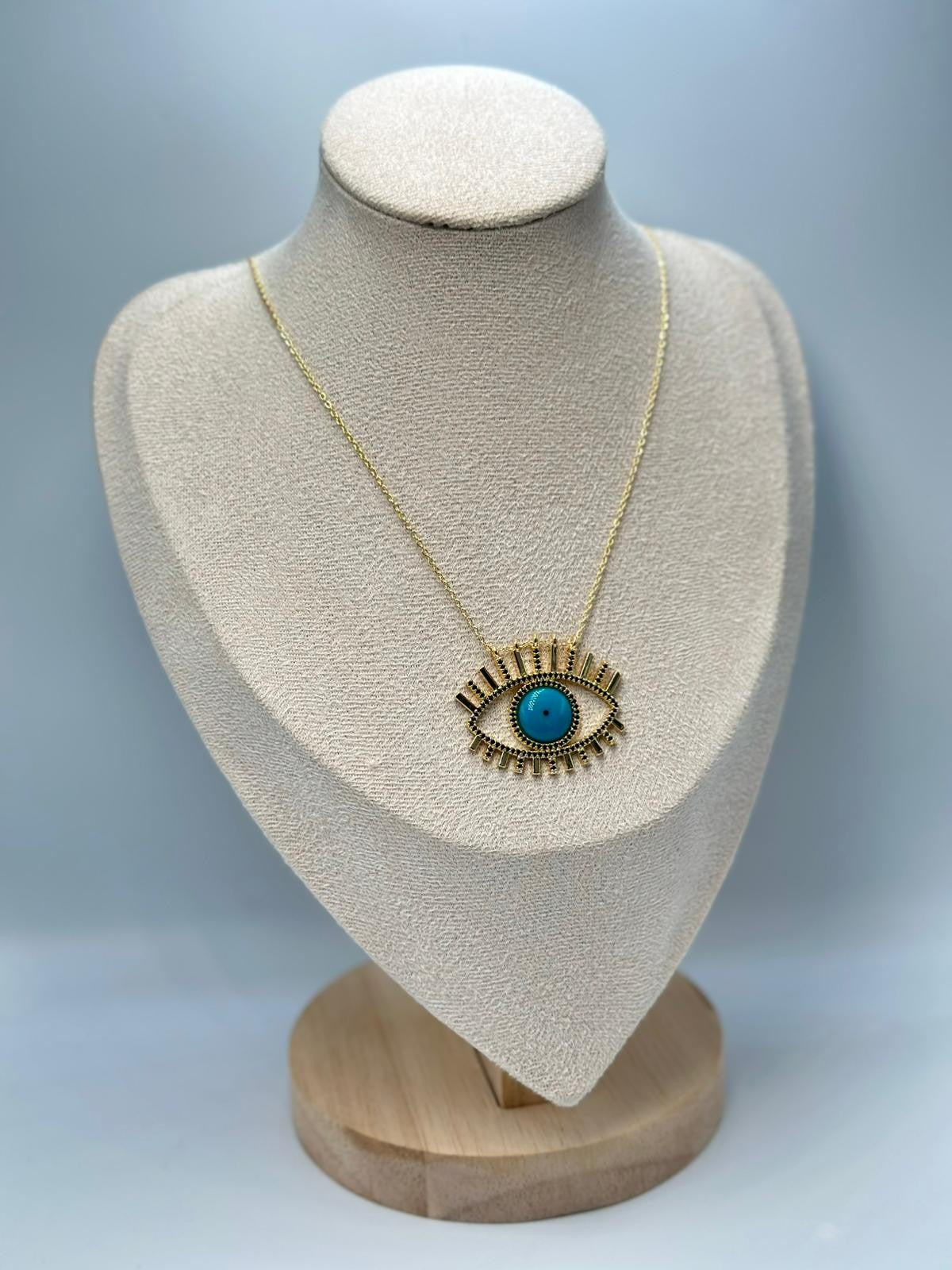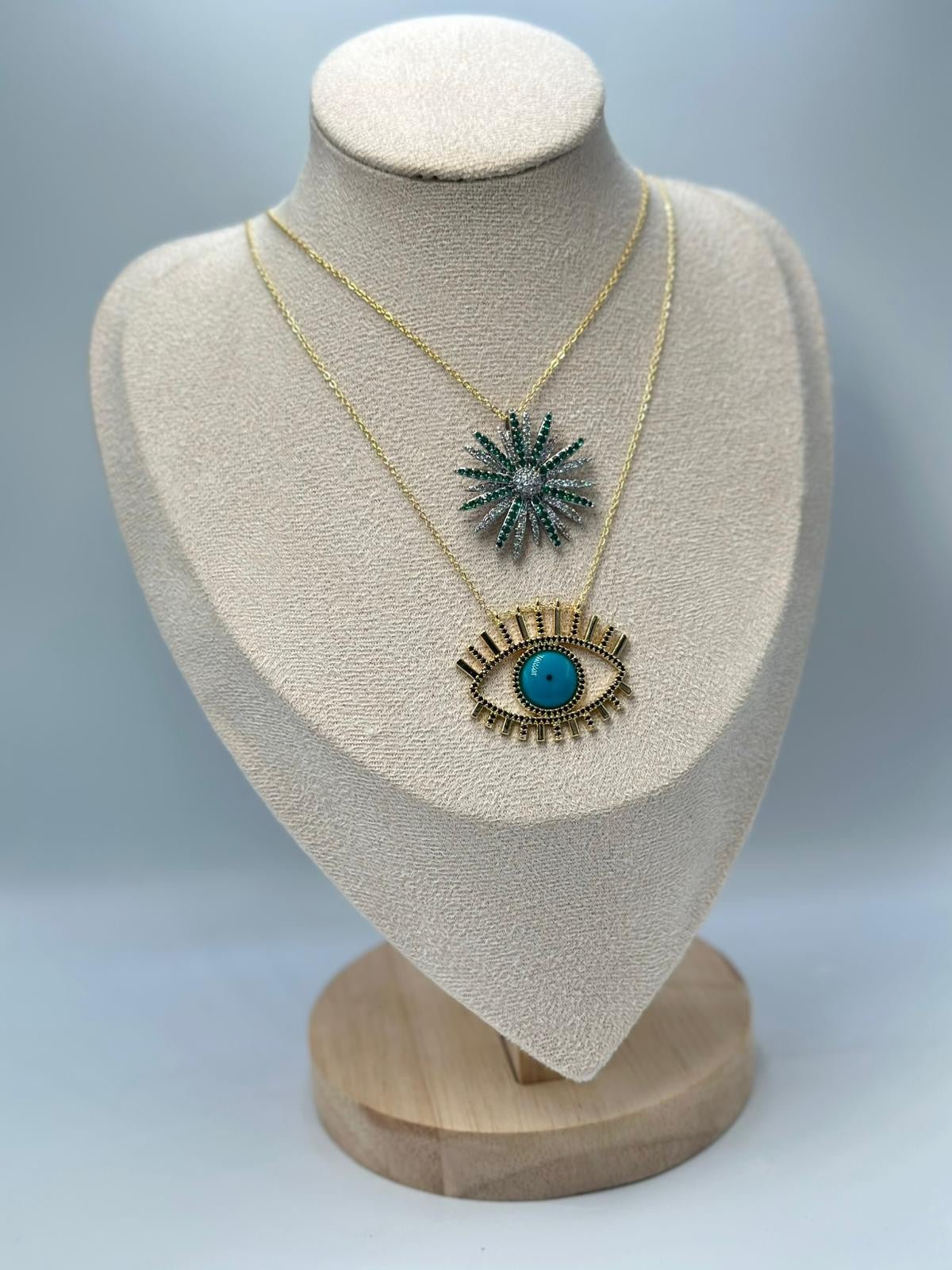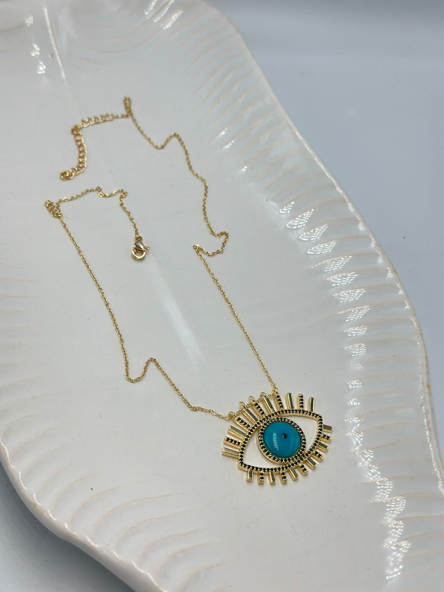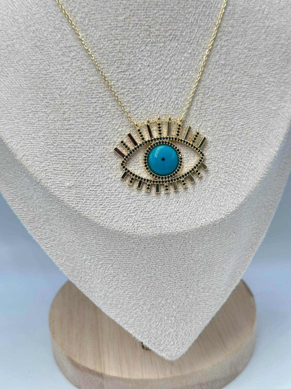 Siyah Zirkon Taş Detay Göz Kolye (Pirinç Kaplama)