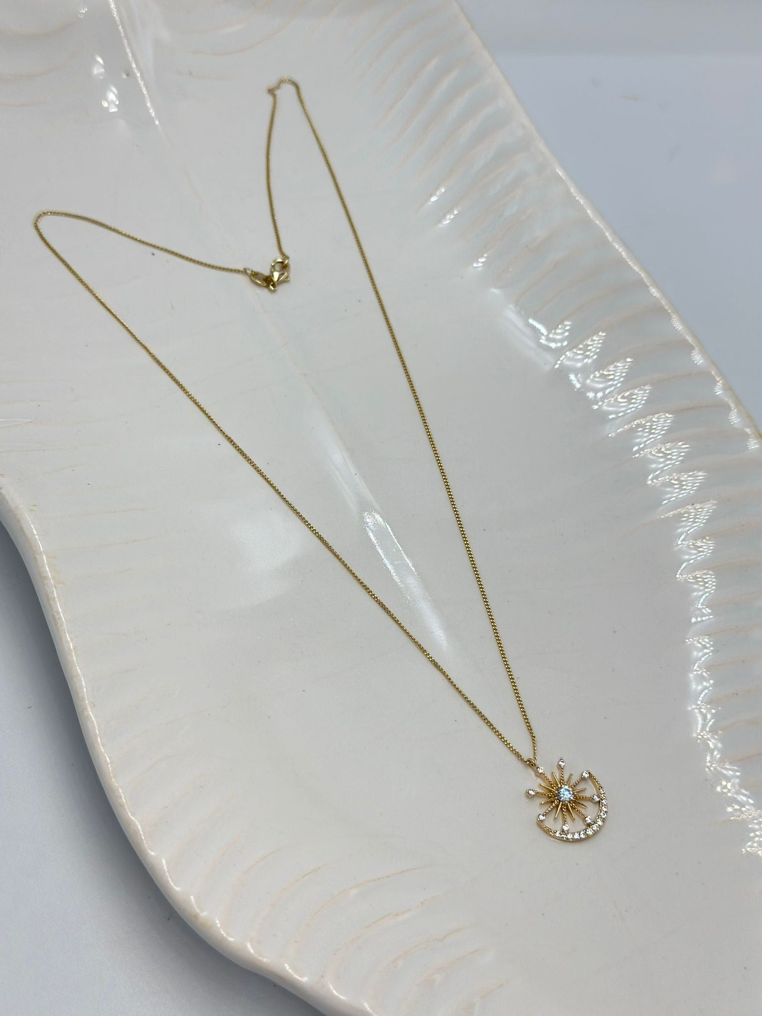 Zirkon Taş Detay Yıldız Kolye (Çelik) (45Cm)